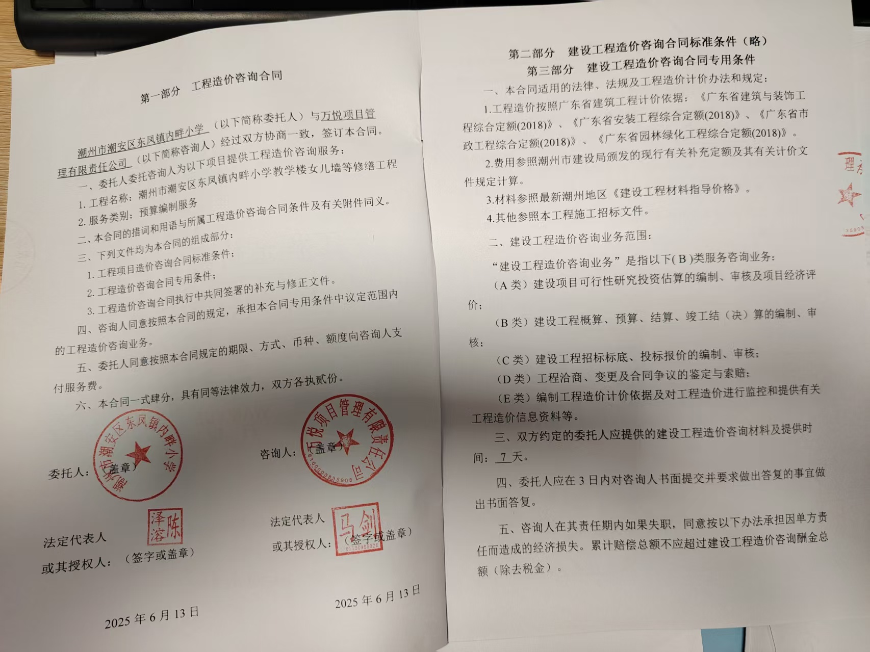 潮州市潮安区东凤镇内畔小学教学楼女儿墙等修缮工程-预算编制合同公开