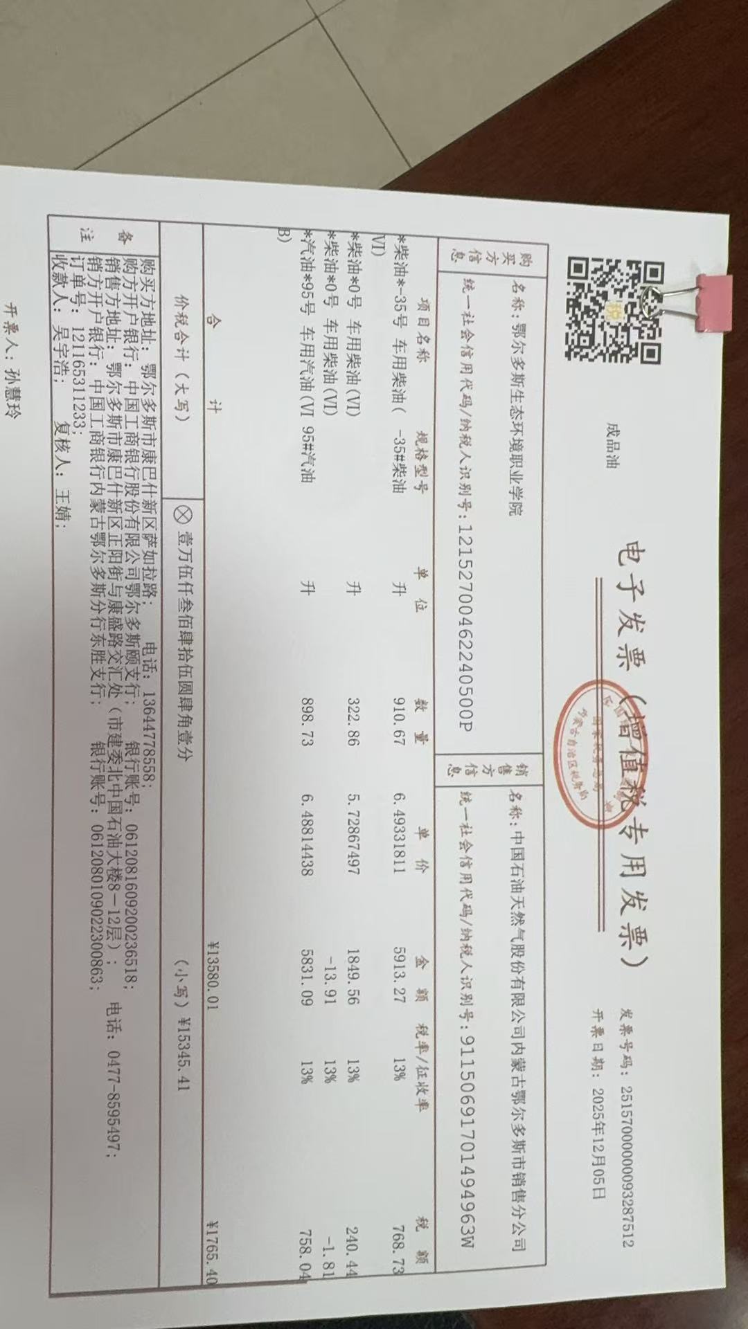 一、合同编号:*****二、合同名称:*****三、项目编号:鄂财购备字(电子)[****]*****号四、项目名称:车辆加油费五、合同主体采购人(甲方):鄂尔多斯生态环境职业学院 地址:鄂尔多斯市康巴什新区 联系方式:*********** 供应商(乙方):中国石油天然气股份有限公司内蒙古鄂尔多斯市销售分公司 地址:内蒙古自治区鄂尔多斯市康巴什区正阳街与康盛路交汇处 联系方式:*********** 六、合同主要信息主要标的: