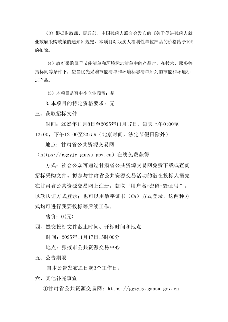 交易平台:张掖市公共资源交易中心招标/采购项目编号:********************投标登记截止时间:********** **:**:**