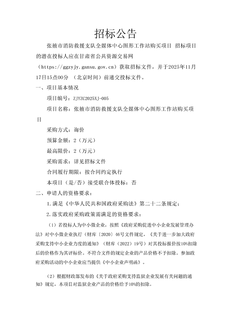 【正常公告】张掖市消防救援支队全媒体中心图形工作站购买项目