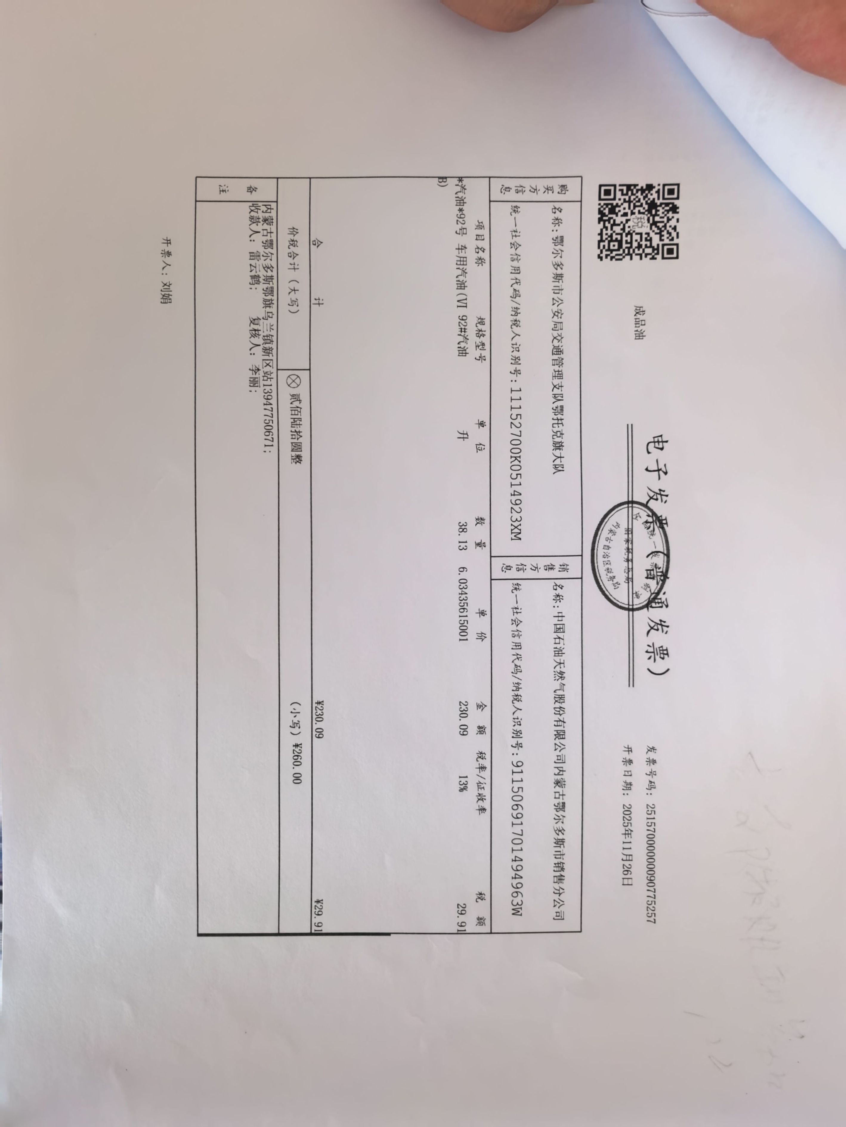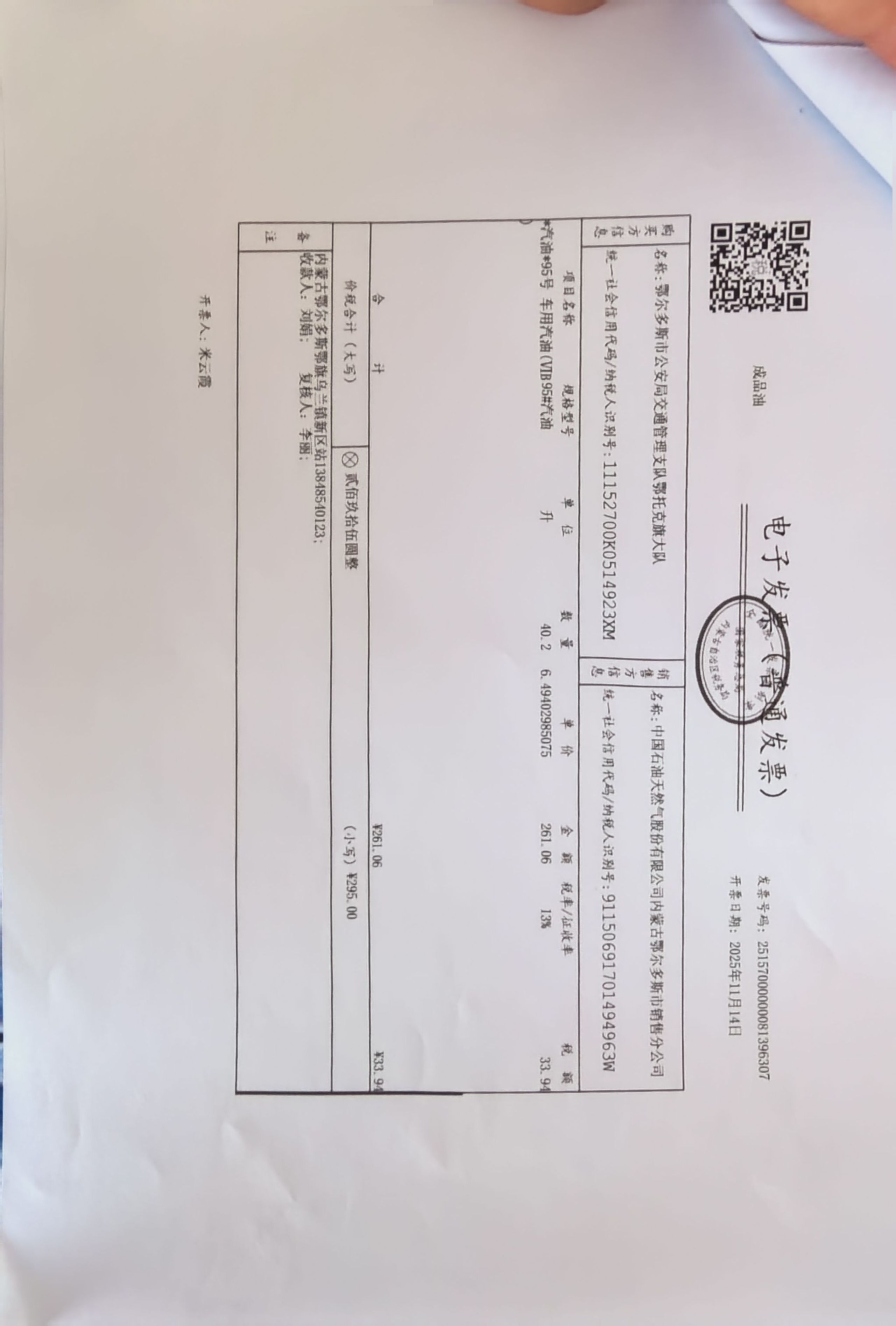 一、合同编号:*************二、合同名称:鄂旗交管大队车辆燃油费三、项目编号:鄂财购备字(电子)[****]*****号四、项目名称:车辆燃油费五、合同主体采购人(甲方):鄂尔多斯市公安局交通管理支队鄂托克旗大队 地址:鄂托克旗乌兰镇 联系方式:*********** 供应商(乙方):中国石油天然气股份有限公司内蒙古销售分公司 地址:内蒙古自治区呼和浩特市新城区成吉思汗大街 联系方式:************ 六、合同主要信息主要标的:
