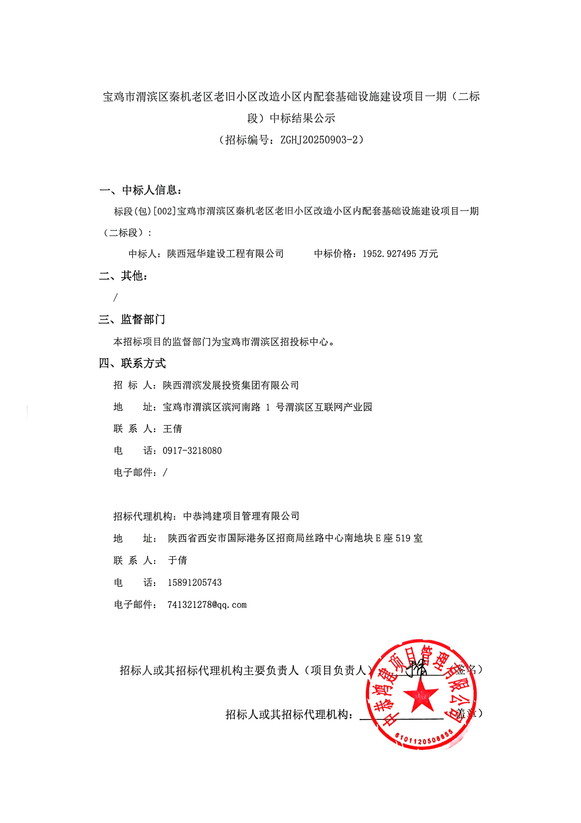 秦机老区老旧小区改造小区内配套基础设施建设项目一期二标段中标结果公示