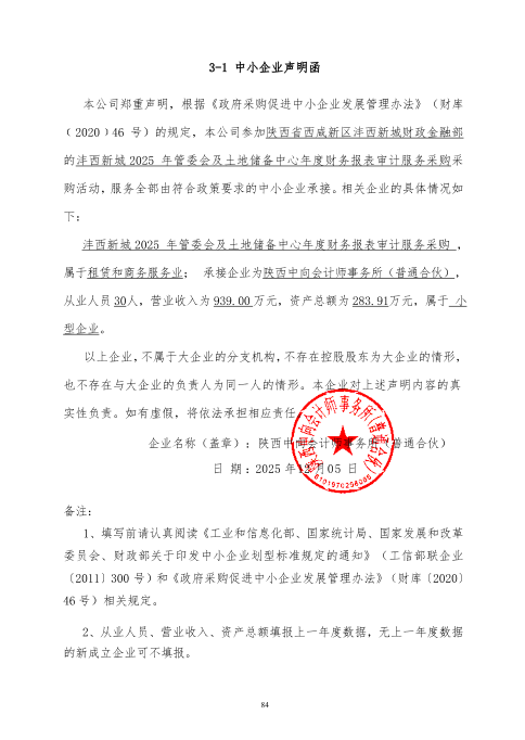 沣西新城2025年管委会及土地储备中心年度财务报表审计服务采购成交结果公告
