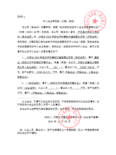 卢氏县木桐乡人民政府木桐乡2025年夜长坪村椿树沟道路硬化项目-成交公告