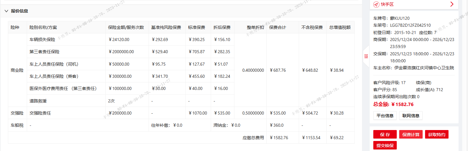 伊金霍洛旗红庆河镇中心卫生院车辆保险(蒙KUU120)政府采购合同公告