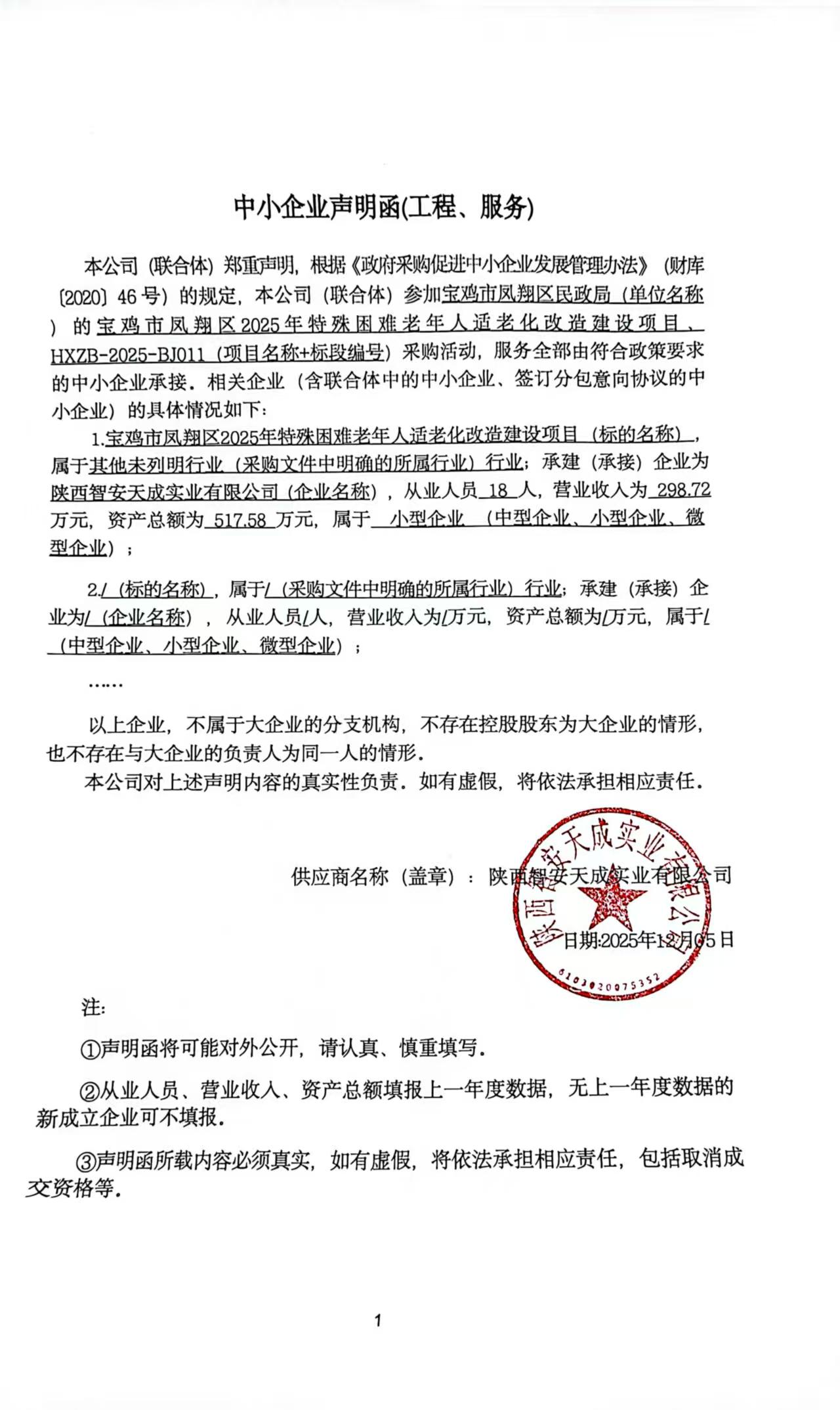 宝鸡市凤翔区2025年特殊困难老年人适老化改造建设项目中标(成交)结果公告