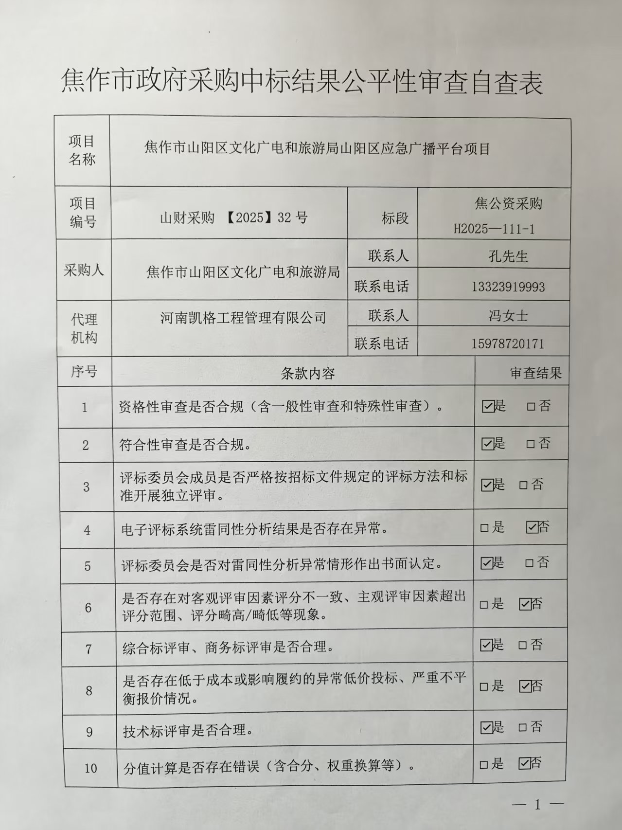 焦作市山阳区文化广电和旅游局山阳区应急广播平台项目中标公告