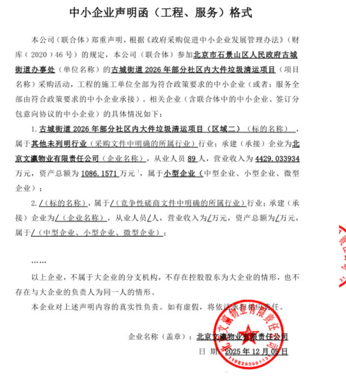 中标成交供应商名称:北京文瀛物业有限责任公司