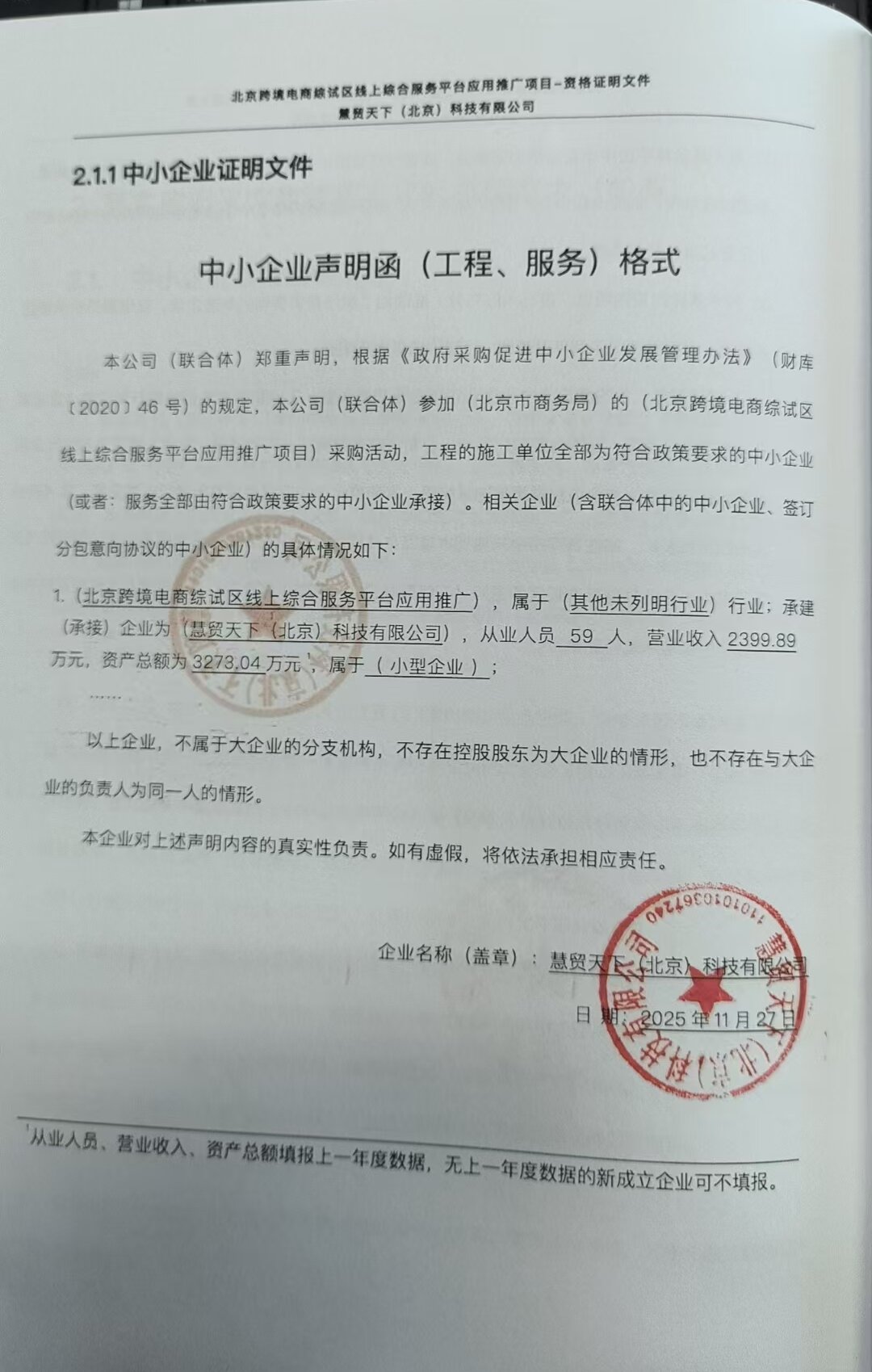 中标成交供应商名称:慧贸天下(北京)科技有限公司