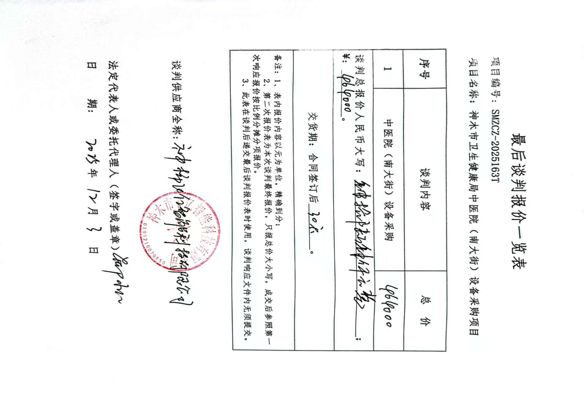 神木市卫生健康局中医院(南大街)设备采购项目成交结果公告