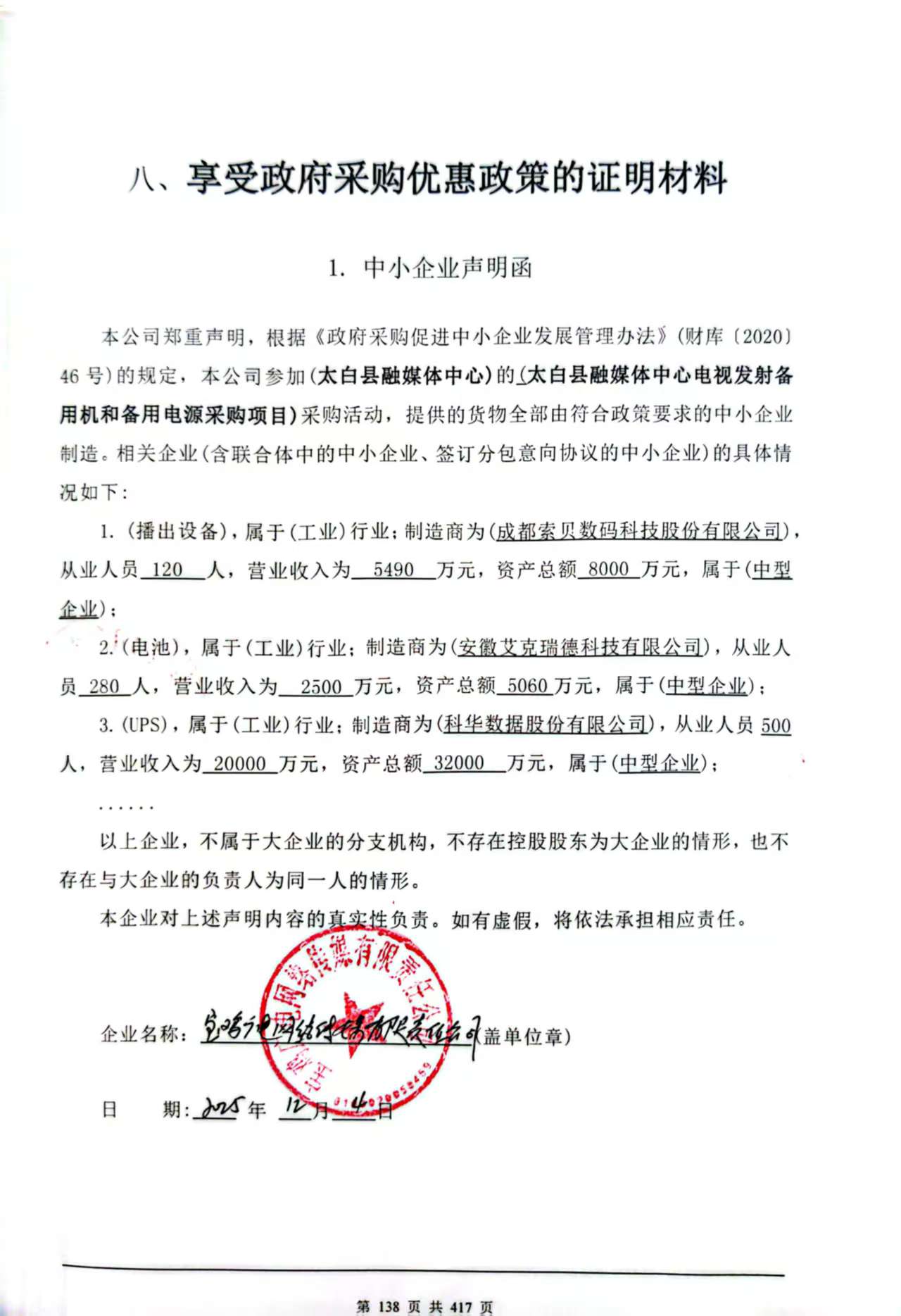 太白县融媒体中心电视发射备用机和备用电源采购项目中标(成交)结果公告