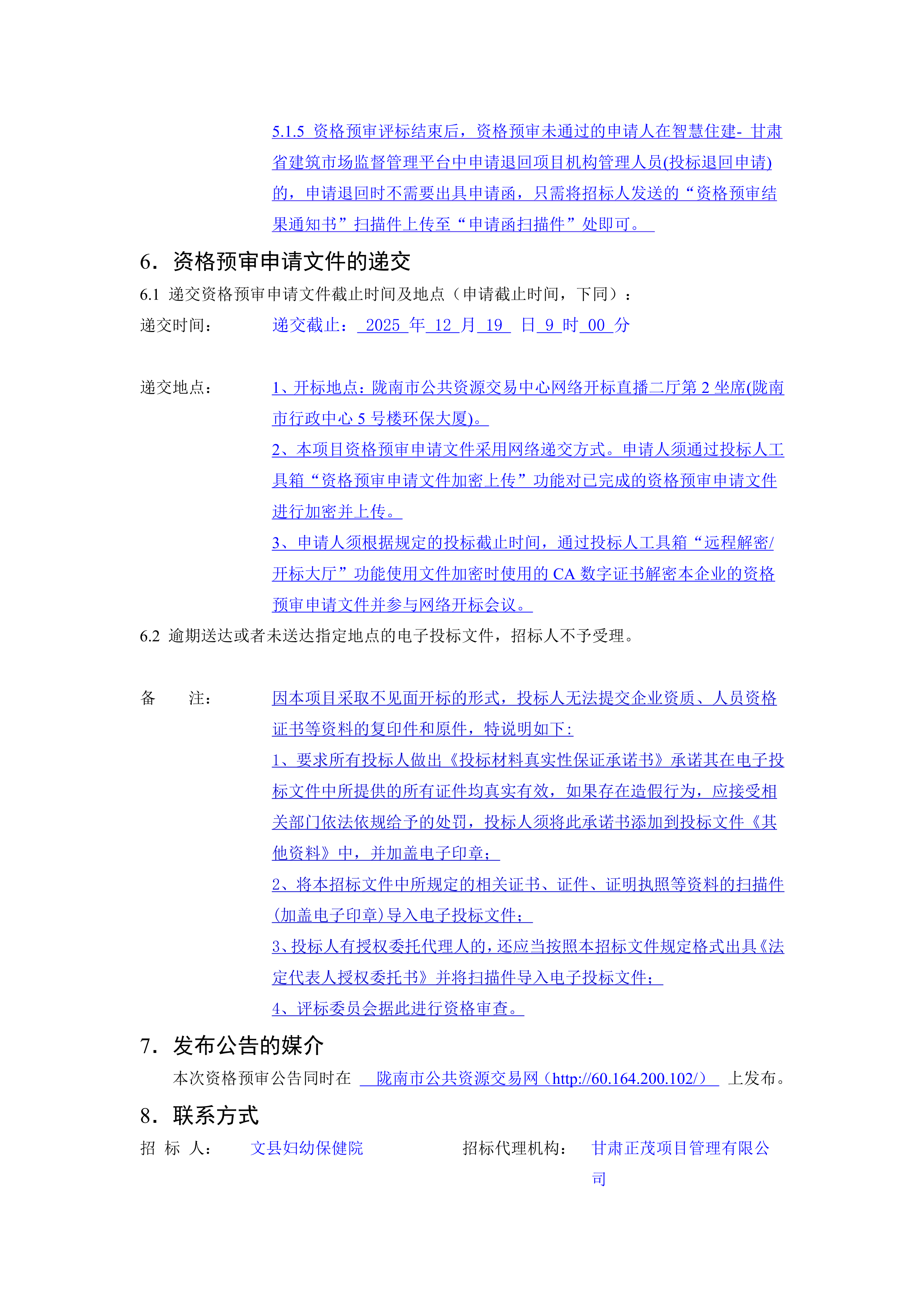 文县妇幼保健院迁建项目施工招标资格预审公告