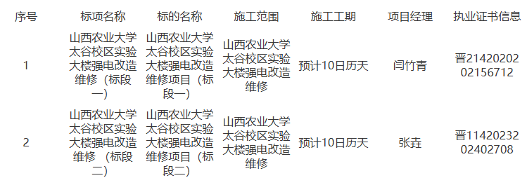 山西农业大学太谷校区实验大楼强电改造维修工程结果公告