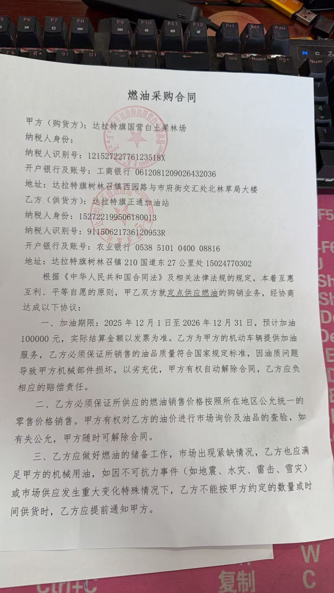 达拉特旗国营白土梁林场加油项目政府采购合同公告