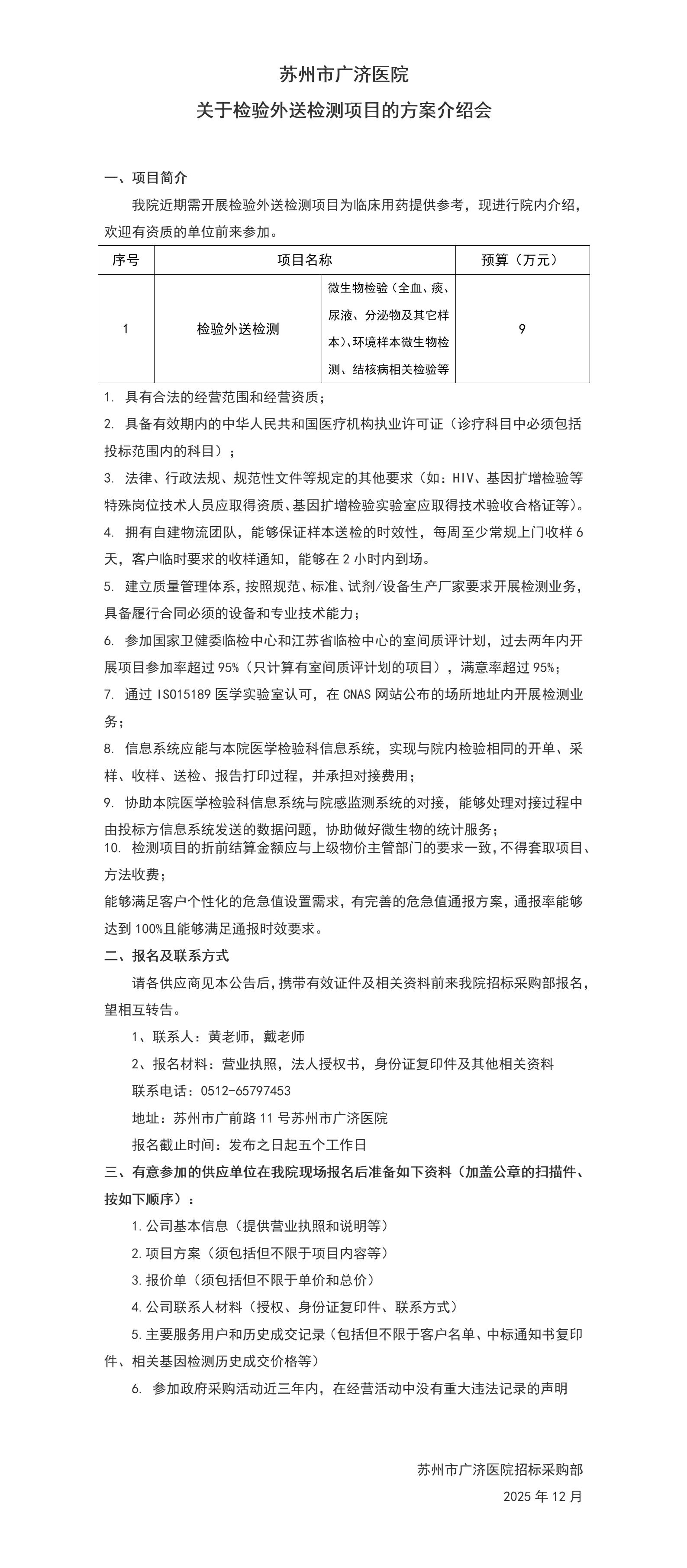 苏州市广济医院关于检验外送检测项目的方案介绍会