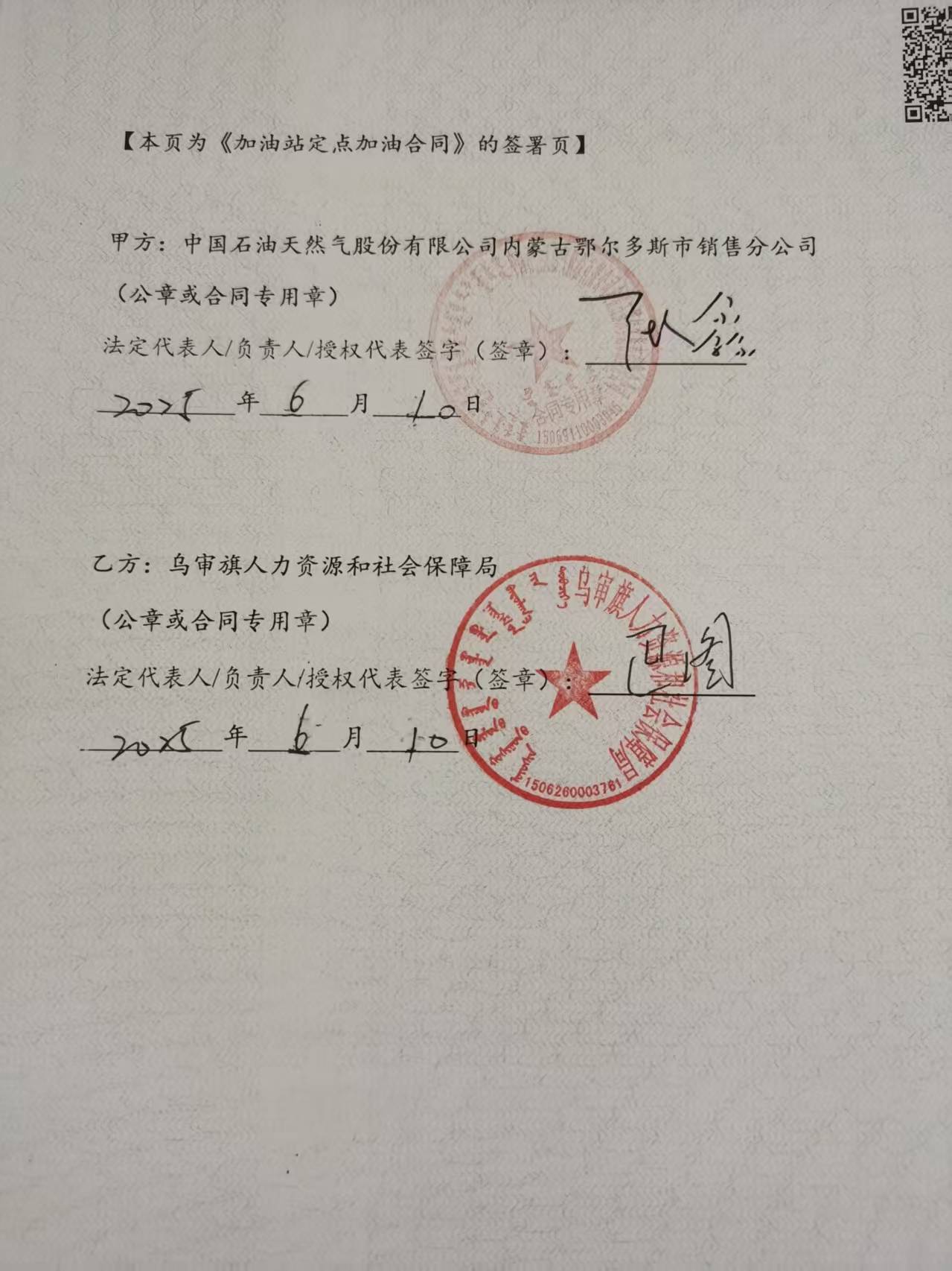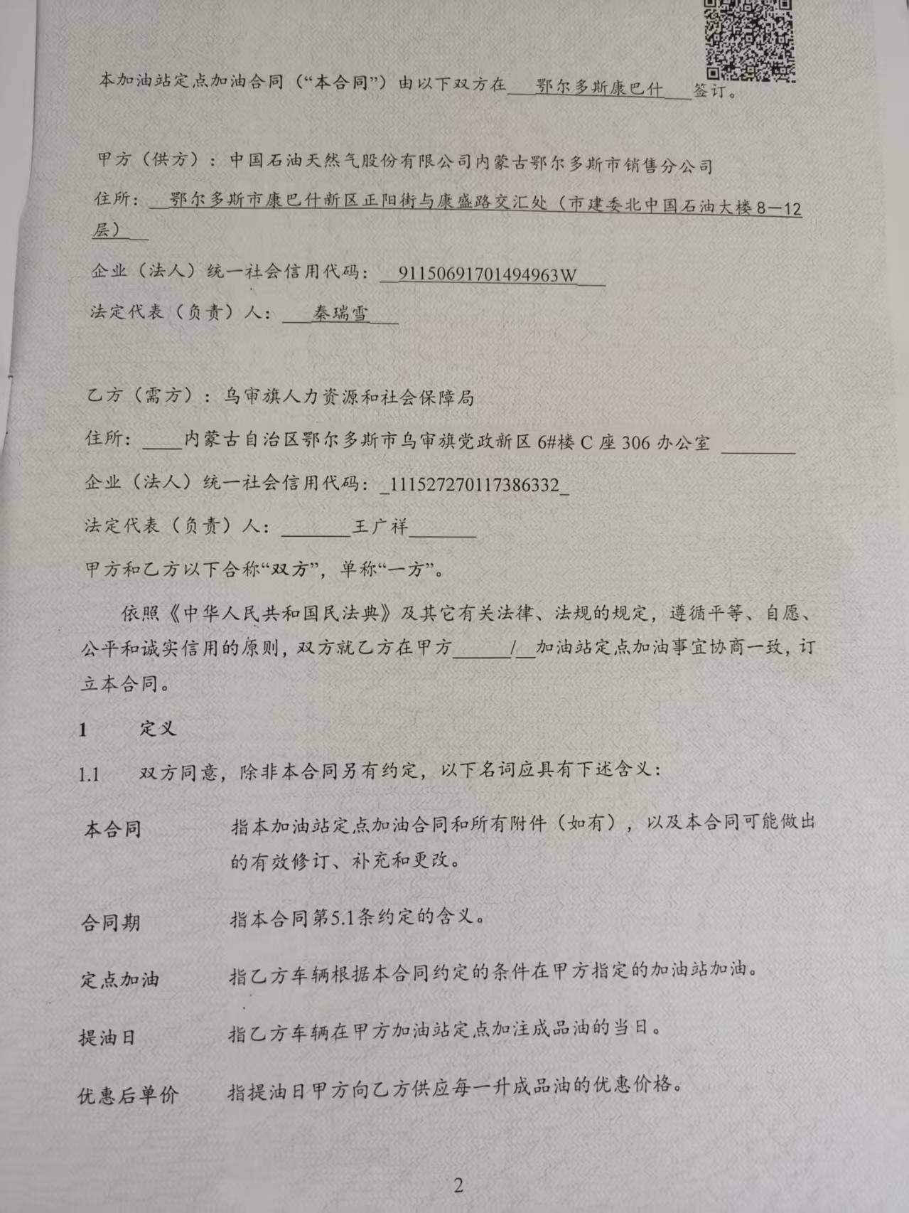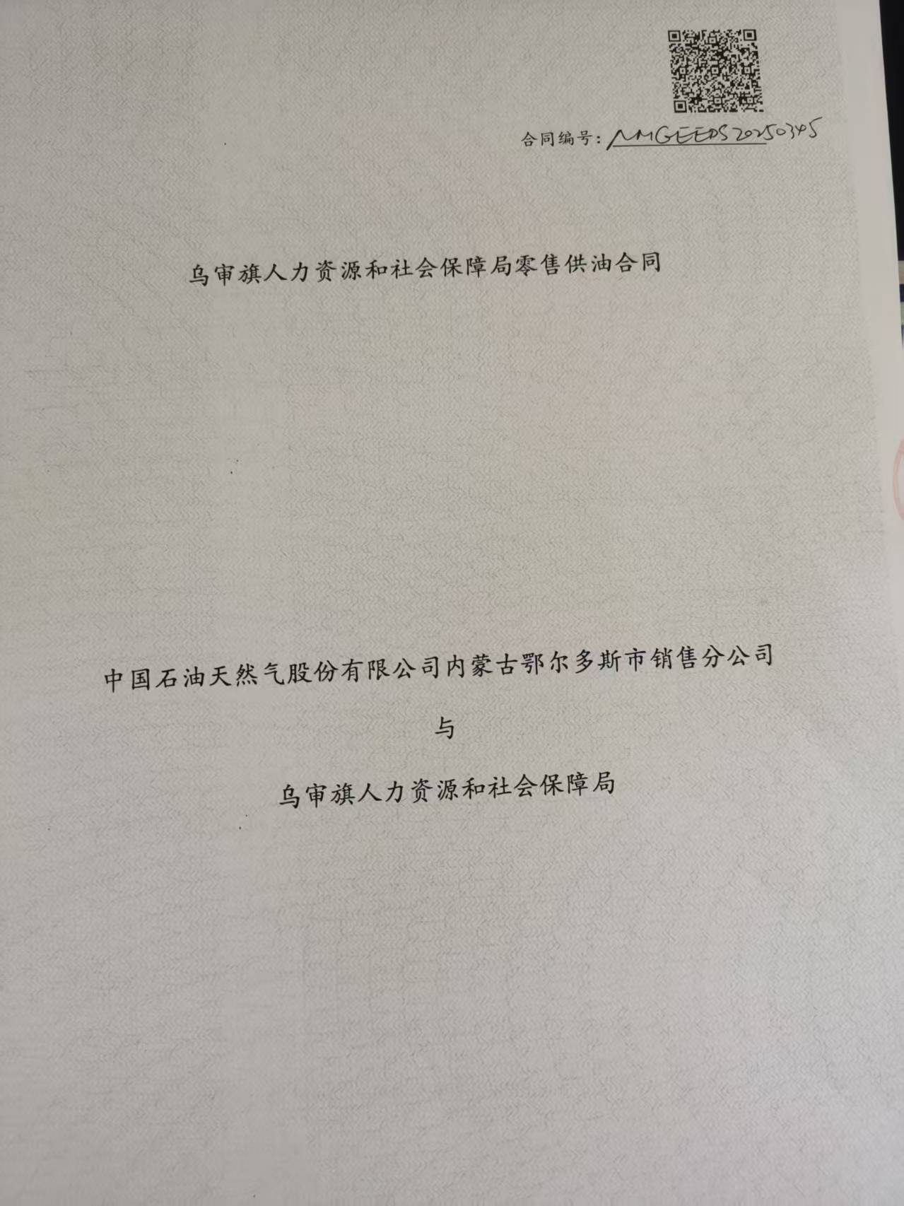 乌审旗人力资源和社会保障局公务用车燃油费政府采购合同公告