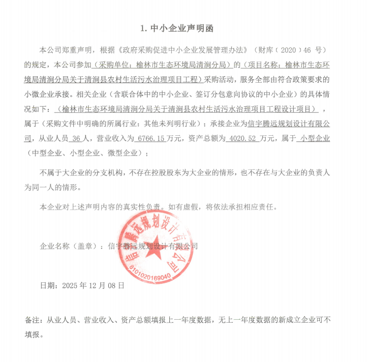 榆林市生态环境局清涧分局关于清涧县农村生活污水治理项目工程设计项目中标(成交)结果公告
