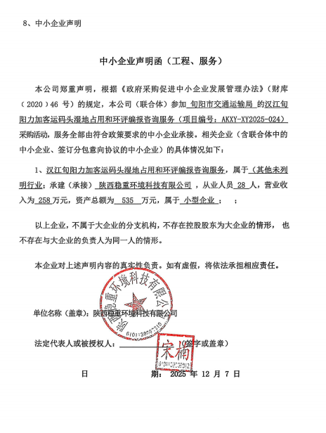 旬阳市交通运输局汉江旬阳力加客运码头湿地占用和环评编报咨询服务中标(成交)结果公告