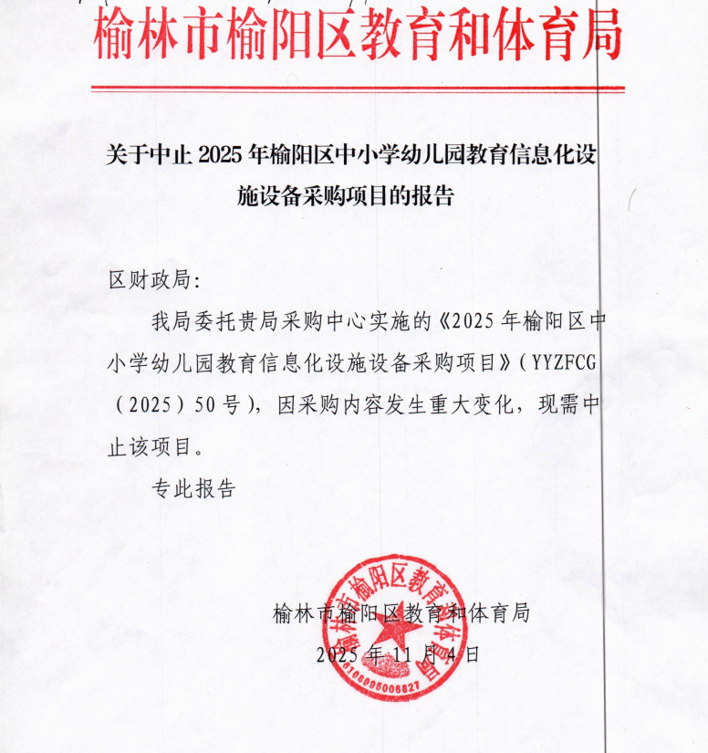 榆林市榆阳区教育和体育局2025年榆阳区中小学幼儿园教育信息化设施设备采购项目结果公告