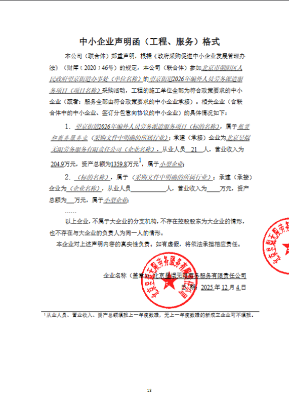 [朝阳区]望京街道2026年编外人员劳务派遣服务项目中标公告