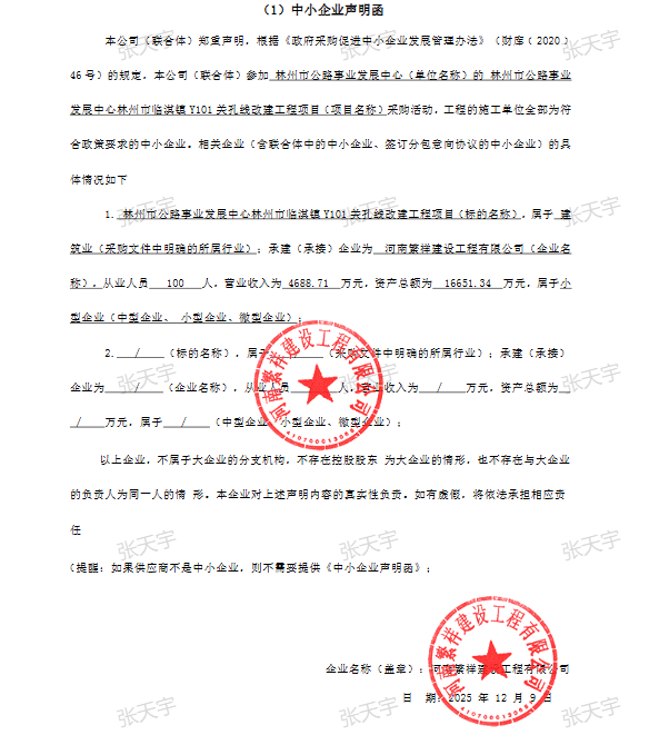 林州市公路事业发展中心林州市临淇镇 Y101 关孔线改建工程项目-成交公告