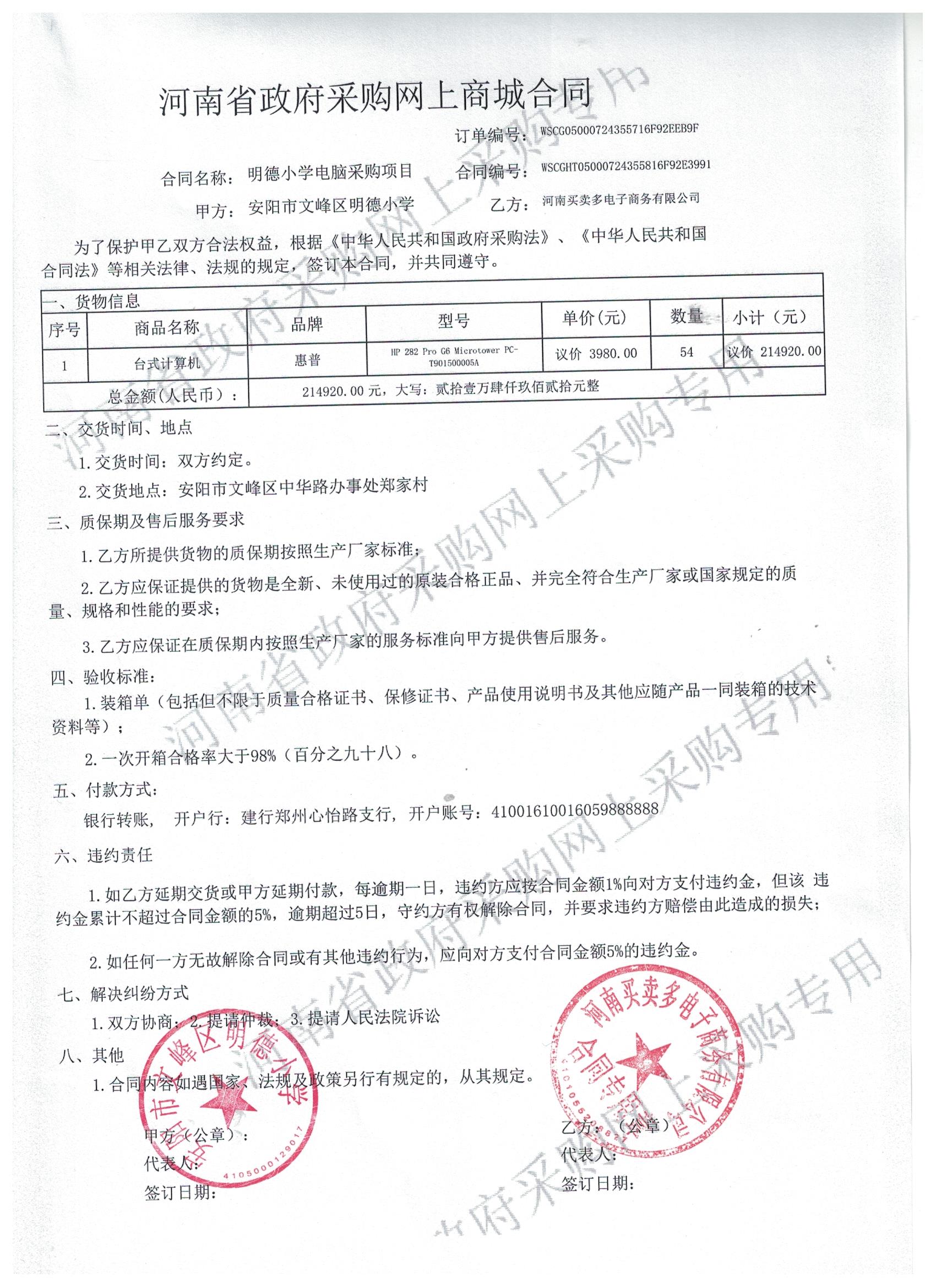 | *. 采购人(甲方):安阳市文峰区明德小学 |