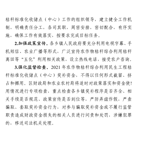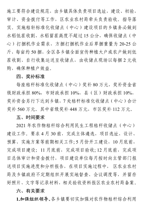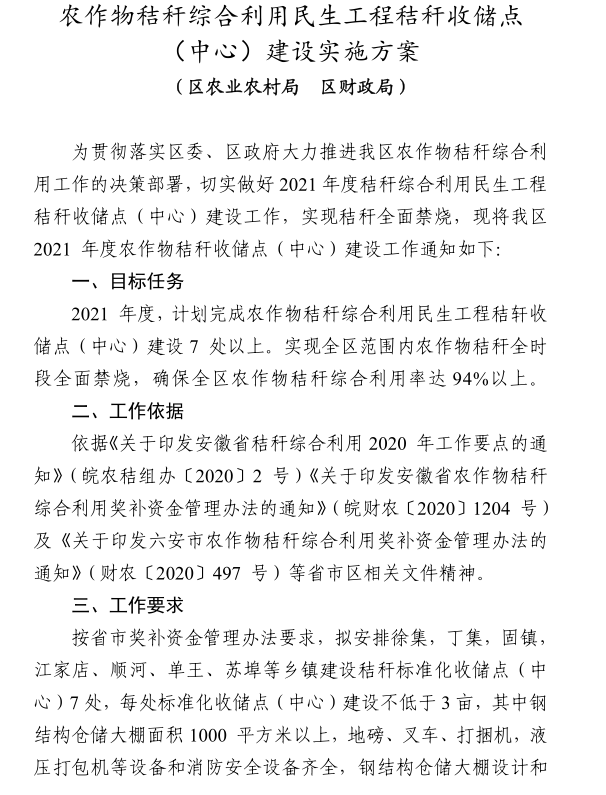 【政策与标准】裕安区农作物秸秆综合利用民生工程秸秆收储点(中心)建设实施方案(继续沿用)