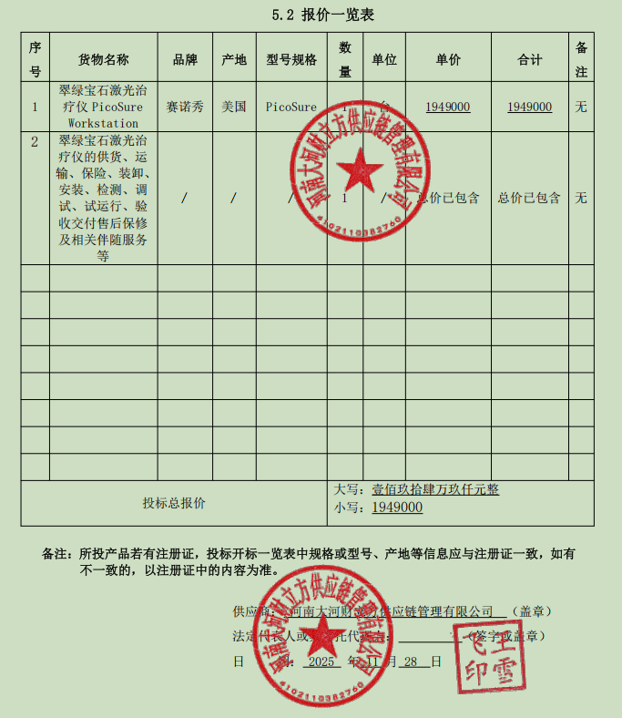郑州大学第五附属医院二氧化碳手术激光系统、翠绿宝石激光治疗仪采购项目-中标公告