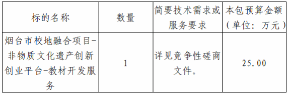 项目名称:烟台市校地融合项目*非物质文化遗产创新创业平台*教材开发服务