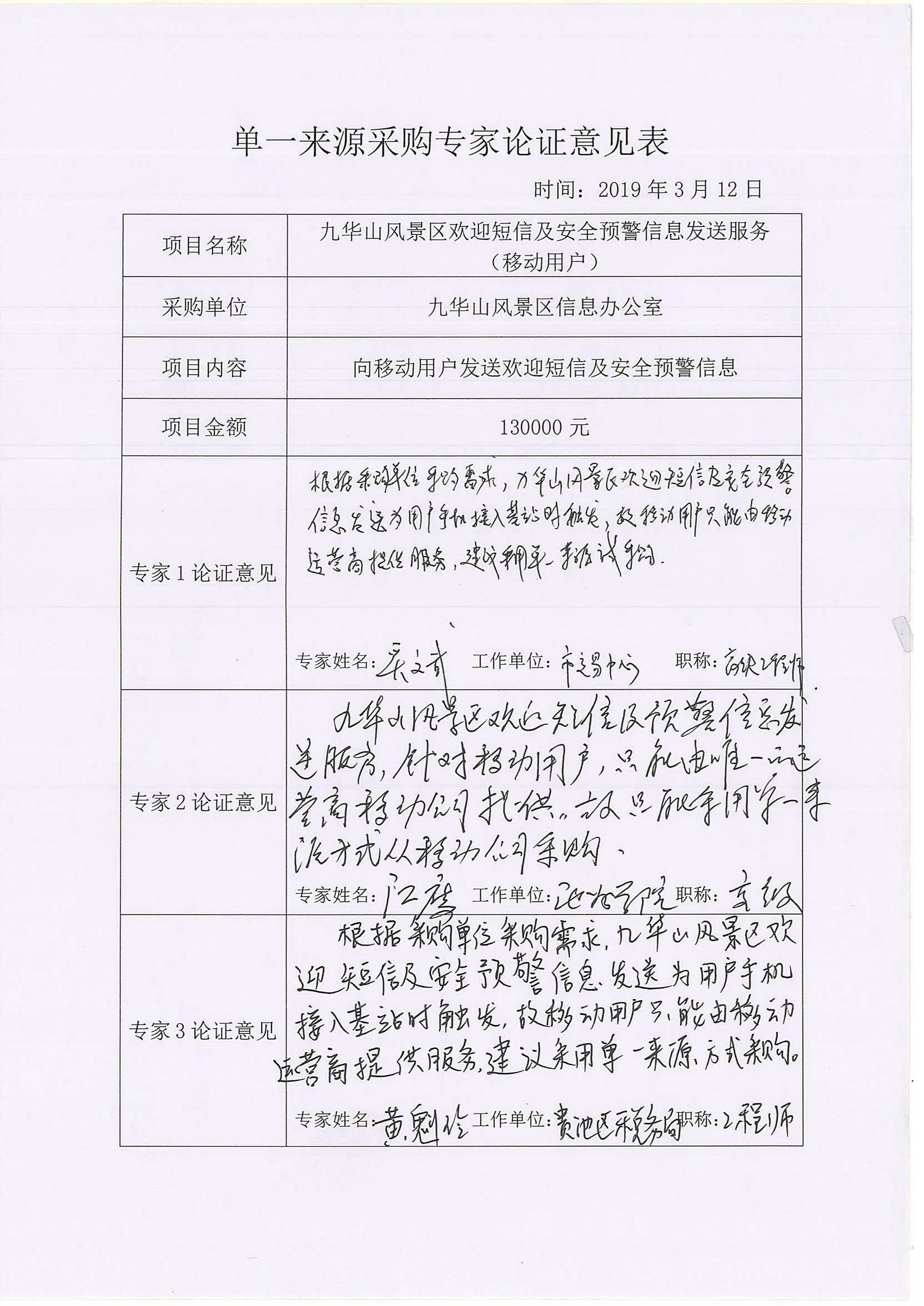 九华山风景区欢迎短信及安全预警信息发送服务(移动用户)项目单一来源方式的公示