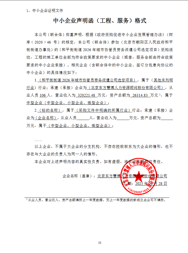 [朝阳区]和平街街道2026年城市协管员劳务派遣公司选定项目中标公告