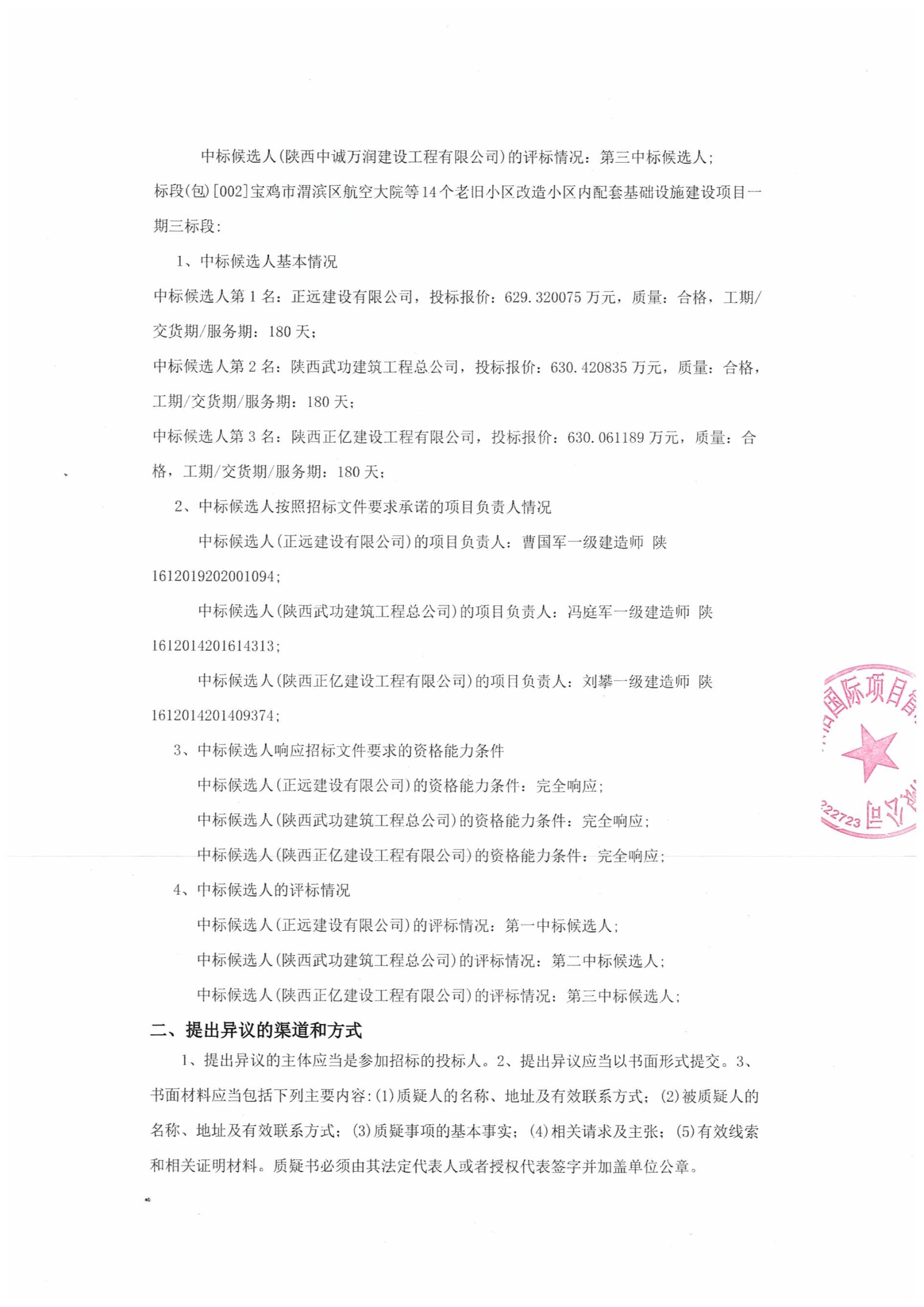市渭滨区航空大院等**个老旧小区改造小区内配套基础设施建设项目一期二标段、三标段中标候选人公示