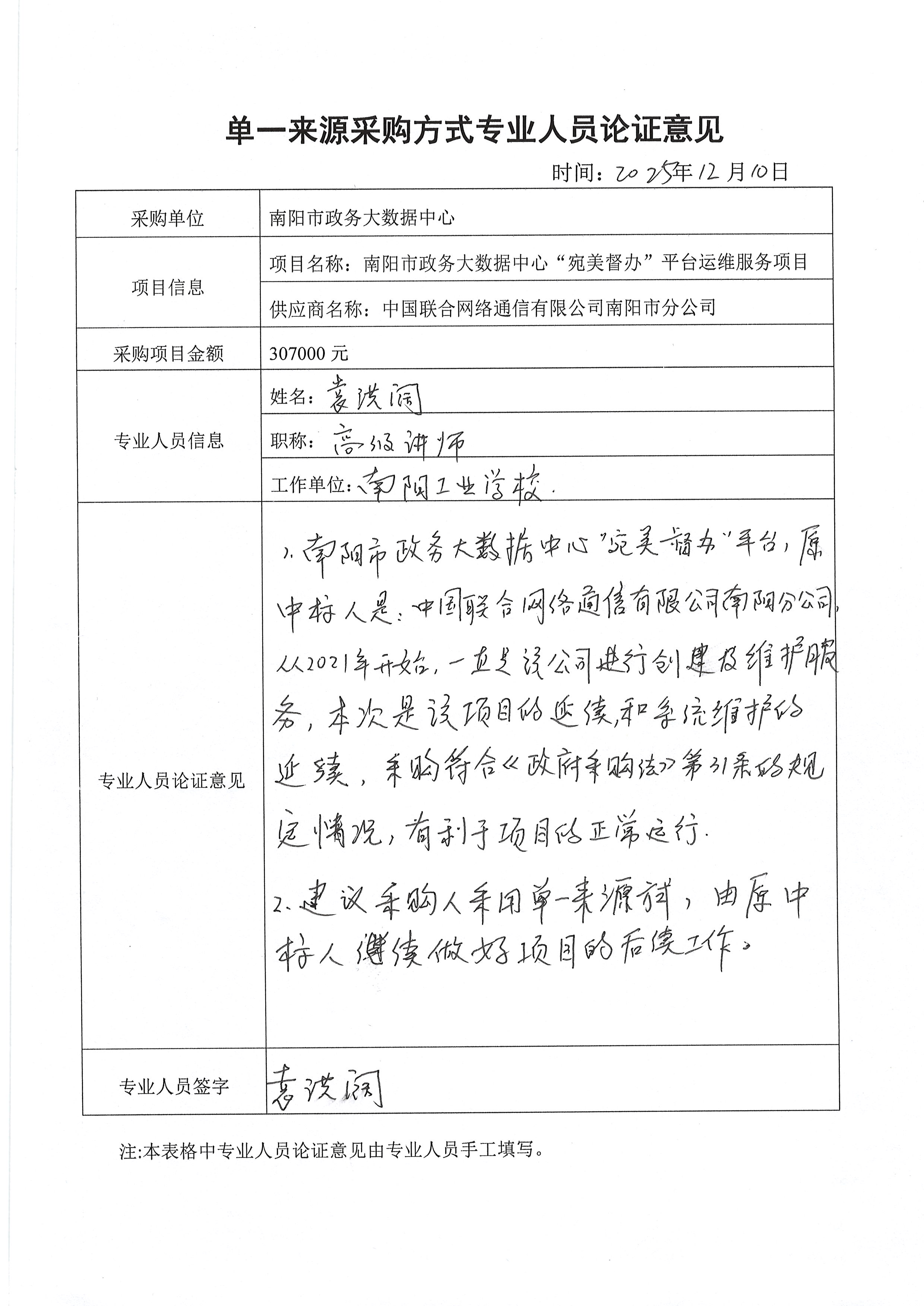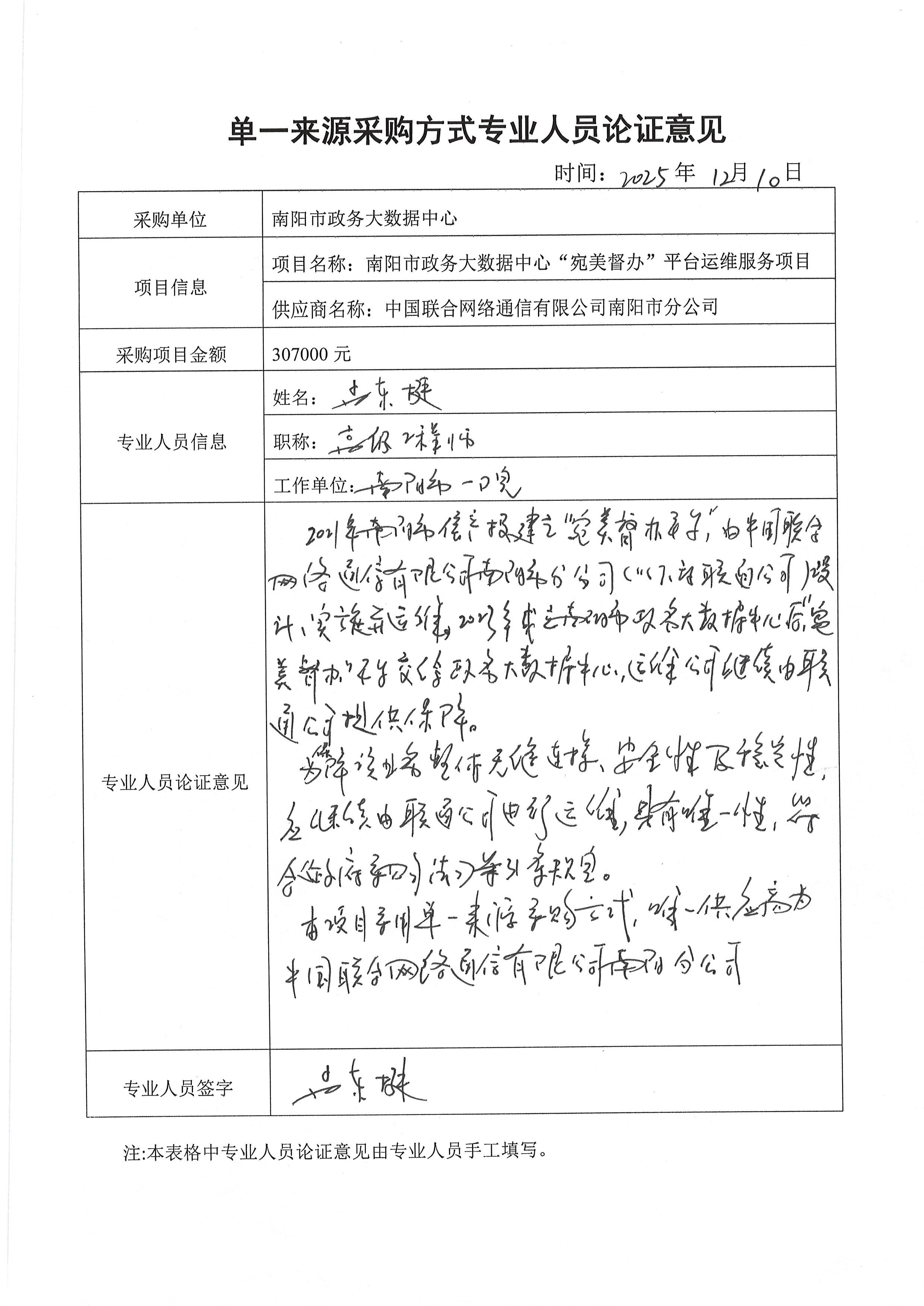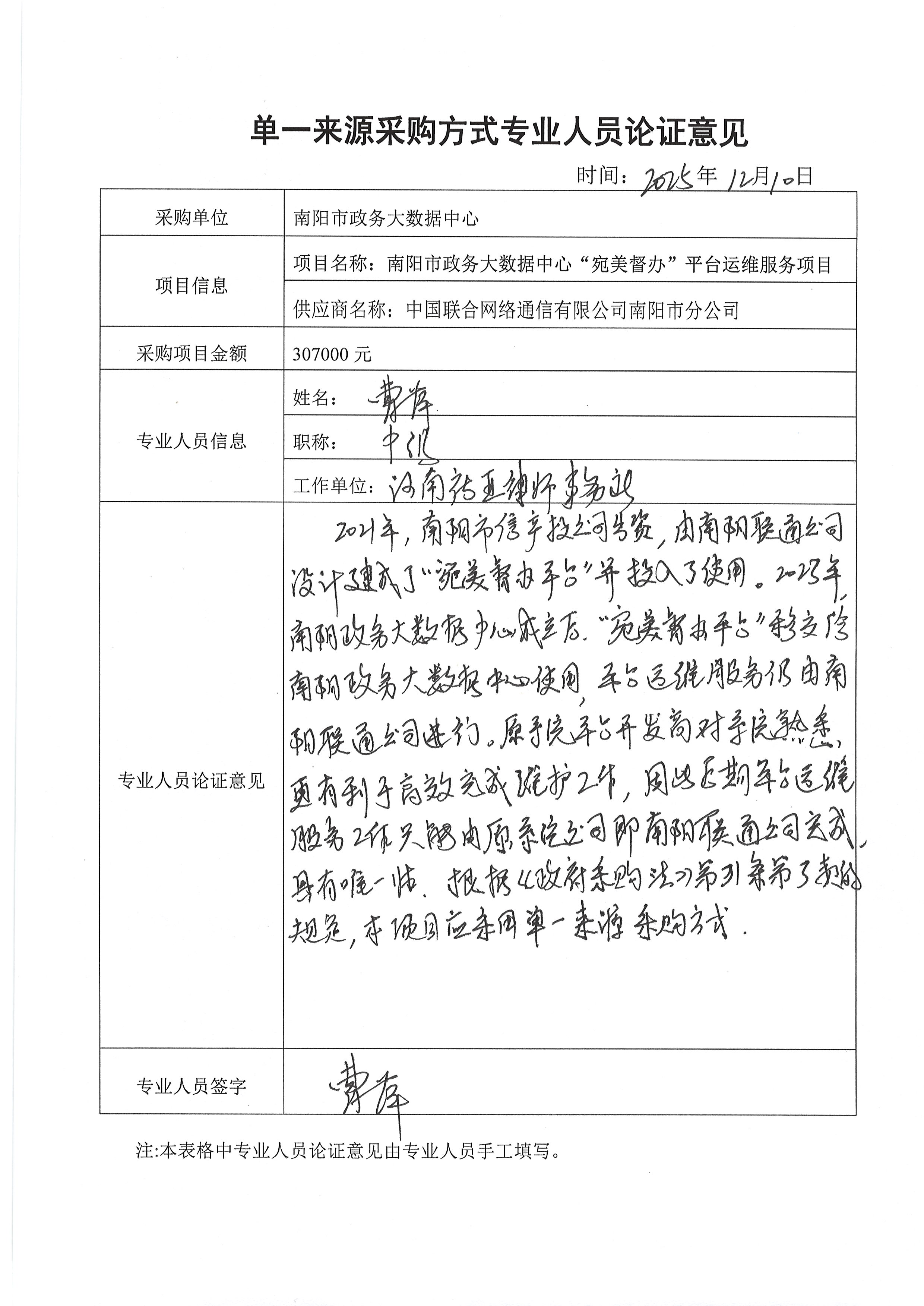 南阳市政务大数据中心“宛美督办”平台运维服务项目单一来源论证公示