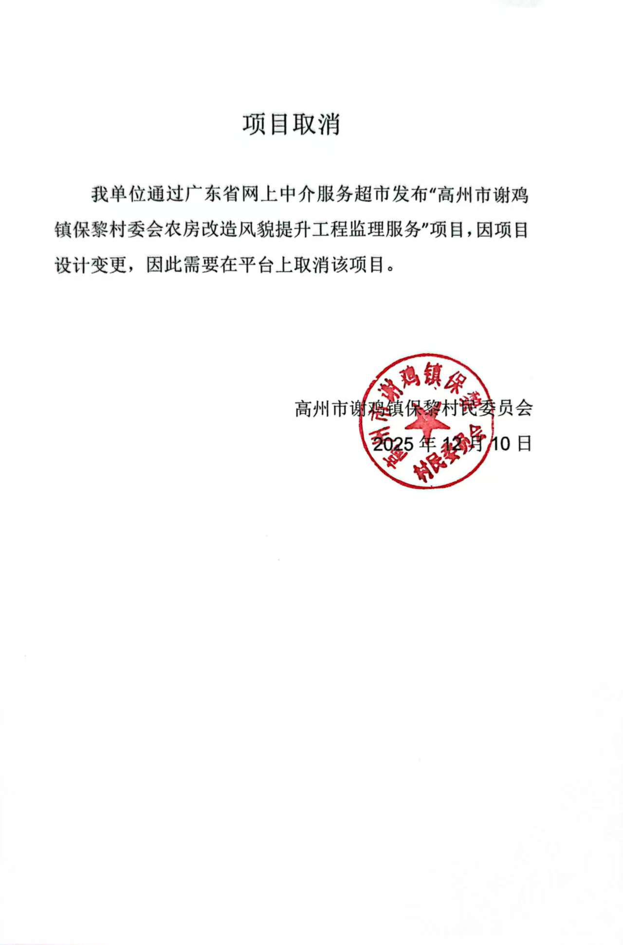 关于【高州市谢鸡镇保黎村委会农房改造风貌提升工程监理服务】采购失败项目的公示
