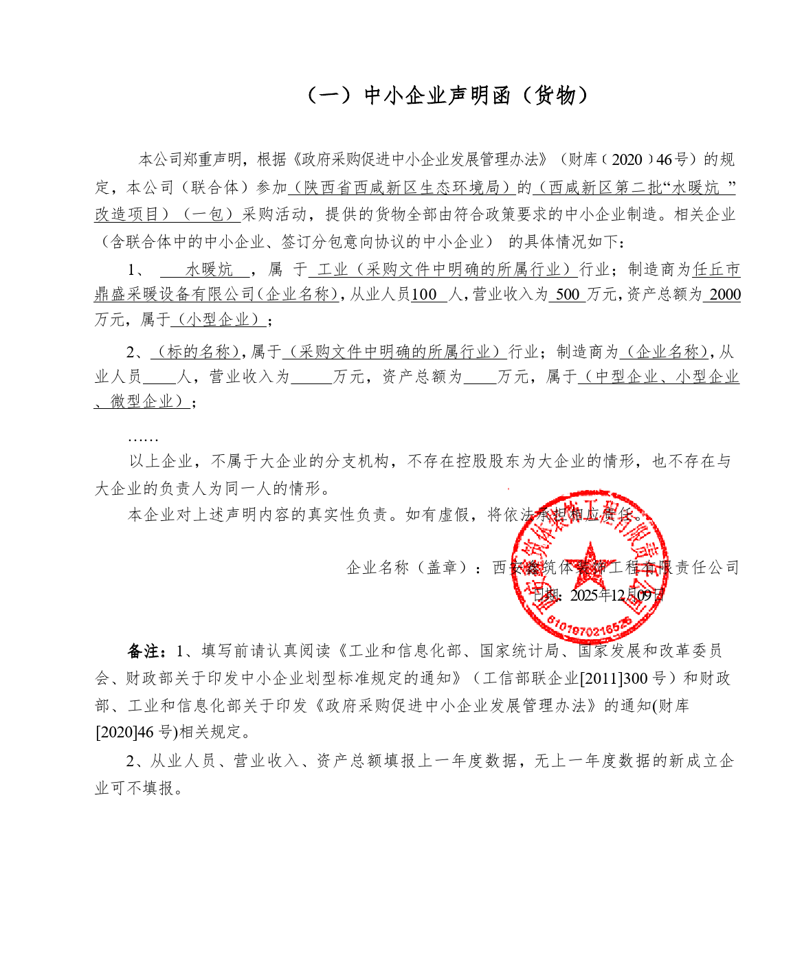 西咸新区第二批“水暖炕”改造项目中标结果公告