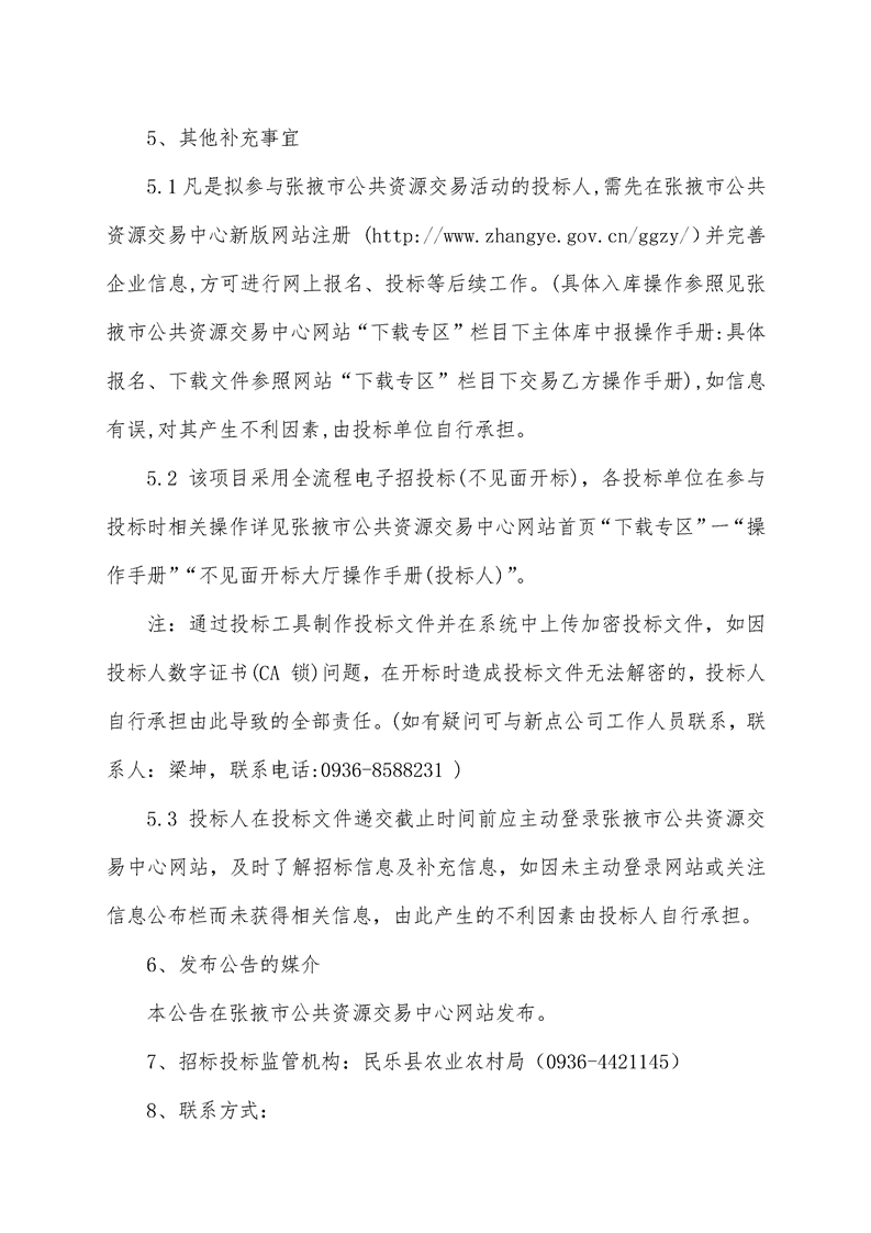 甘肃/张掖 招标采购