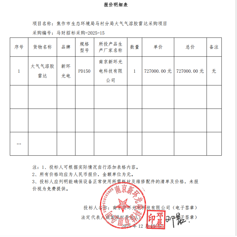 | *、采购项目名称:焦作市生态环境局马村分局大气气溶胶雷达采购项目 | |||||||||||||||||||||||||||||||
