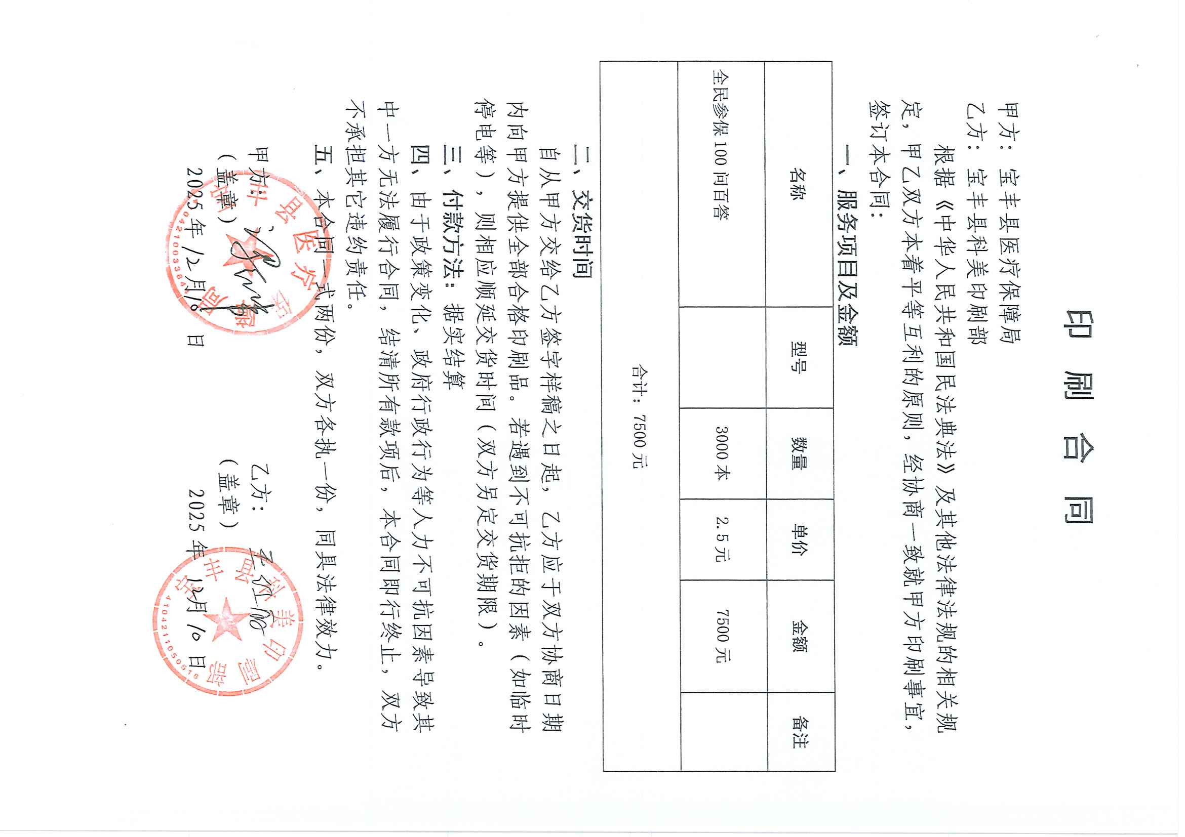 | *.供应商(乙方):宝丰县科美印刷部 | ||||||||||||