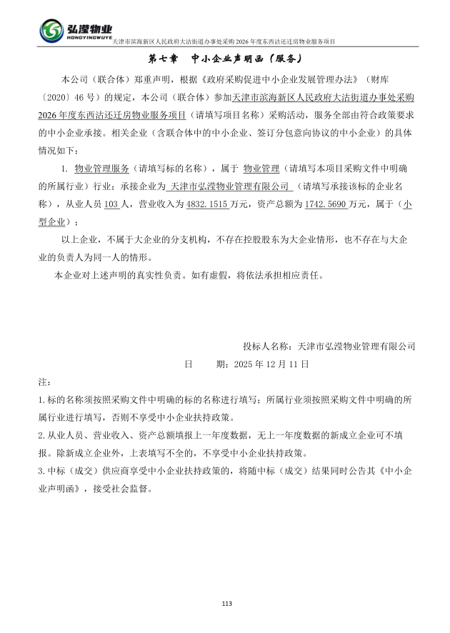 受天津市滨海新区人民政府大沽街道办事处委托,天津市滨海新区政府采购中心以公开招标方式,对天津市滨海新区人民政府大沽街道办事处采购****年度东西沽还迁房物业服务项目实施采购,现将中标结果公布如下: 一、项目名称和编号 *.项目名称:天津市滨海新区人民政府大沽街道办事处采购****年度东西沽还迁房物业服务项目 *.项目编号:**************** 二、中标信息 *.中标供应商名称:天津市弘滢物业管理有限公司 *.中标供应商地址:天津市滨海新区塘沽街道紫云园******** *.供应商评审报价、评审总得分及排序情况:见附件 *.主要中标标的名称、规格型号、数量、单价、服务要求或者标的基本概况:物业管理服务 三、评标委员会成员名单 张健文、董海亮、刘红、马楠、陈凤、蔡英杰(采购人代表)、梁臣(采购人代表) 四、项目联系人及联系方式 *.联系人:肖琳 *.联系方式:************ 五、采购人的名称、地址和联系方式 *.采购人名称:天津市滨海新区人民政府大沽街道办事处 *.采购人地址:天津市滨海新区西沽远景庄园南侧 *.采购人联系电话:梁臣,************ 六、采购代理机构的名称、地址和联系方式 *.采购代理机构名称:天津市滨海新区政府采购中心 *.采购代理机构地址:天津市滨海新区营口道***号 *.采购代理机构联系方式:************ 七、质疑方式 参与本项目政府采购活动的供应商认为中标结果使自己的合法权益受到损害的,可以在中标结果公告期限届满之日起*个工作日内,以书面形式向采购人和天津市滨海新区政府采购中心提出质疑,逾期不予受理。 八、本项目不向中标供应商收取服务费。 九、中标结果公告期限 中标结果的公告期限为*个工作日。 十、招标文件公告:见附件