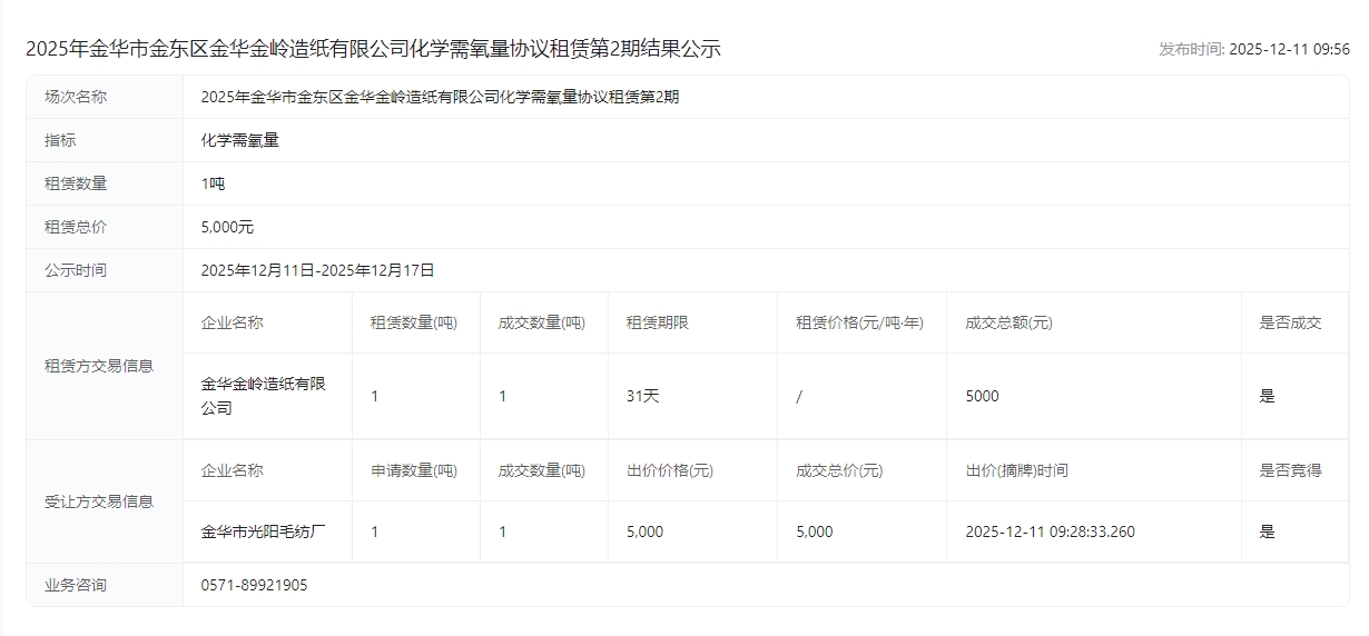 有限公司化学需氧量协议租赁第2期结果公示成交公示