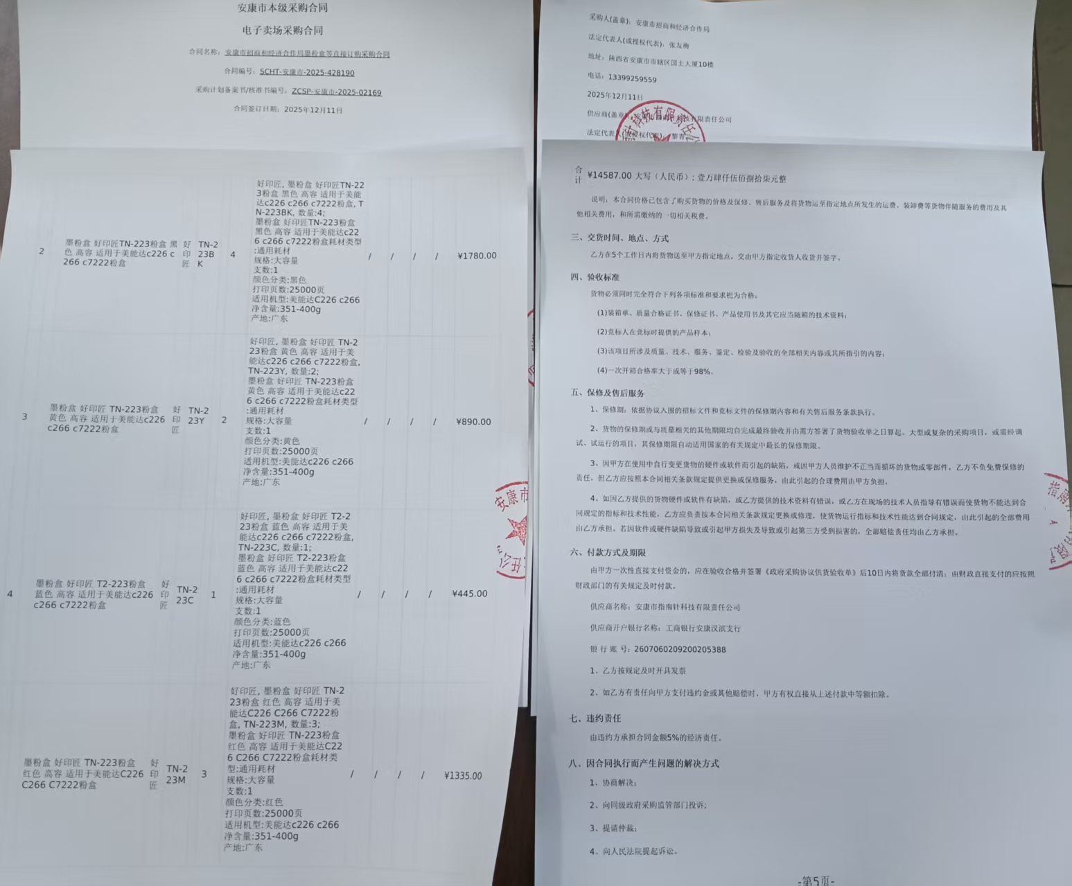 安康市招商和经济合作局安康市招商和经济合作局墨粉盒等直接订购采购合同政府采购合同公告