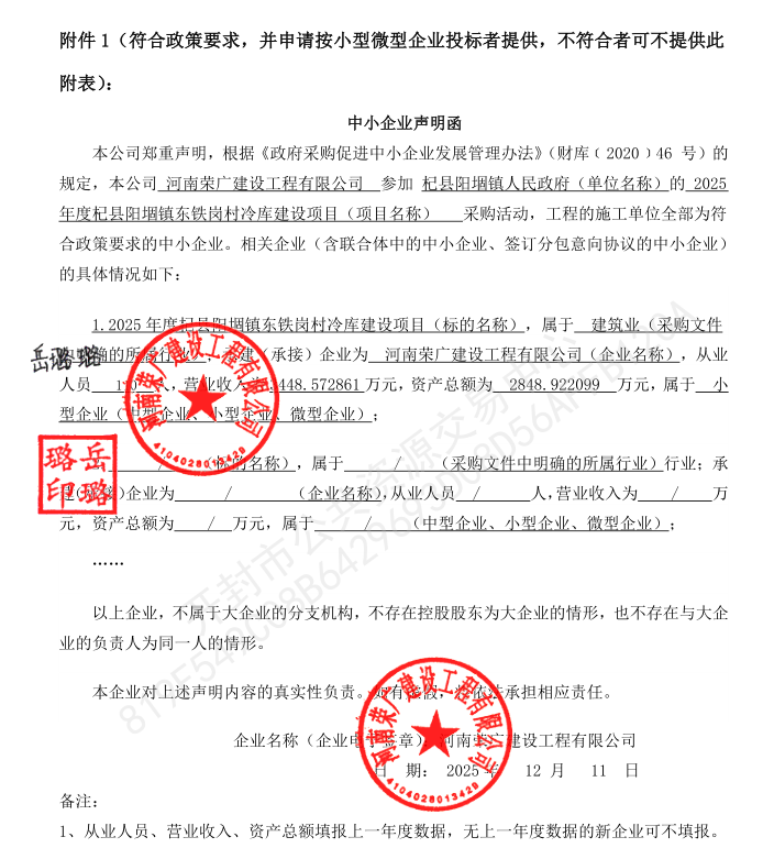 2025年度杞县阳堌镇东铁岗村冷库建设项目成交结果公告