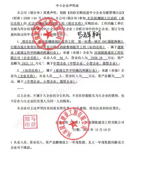 杞县阳堌镇镇区提升工程第一标段成交结果公告