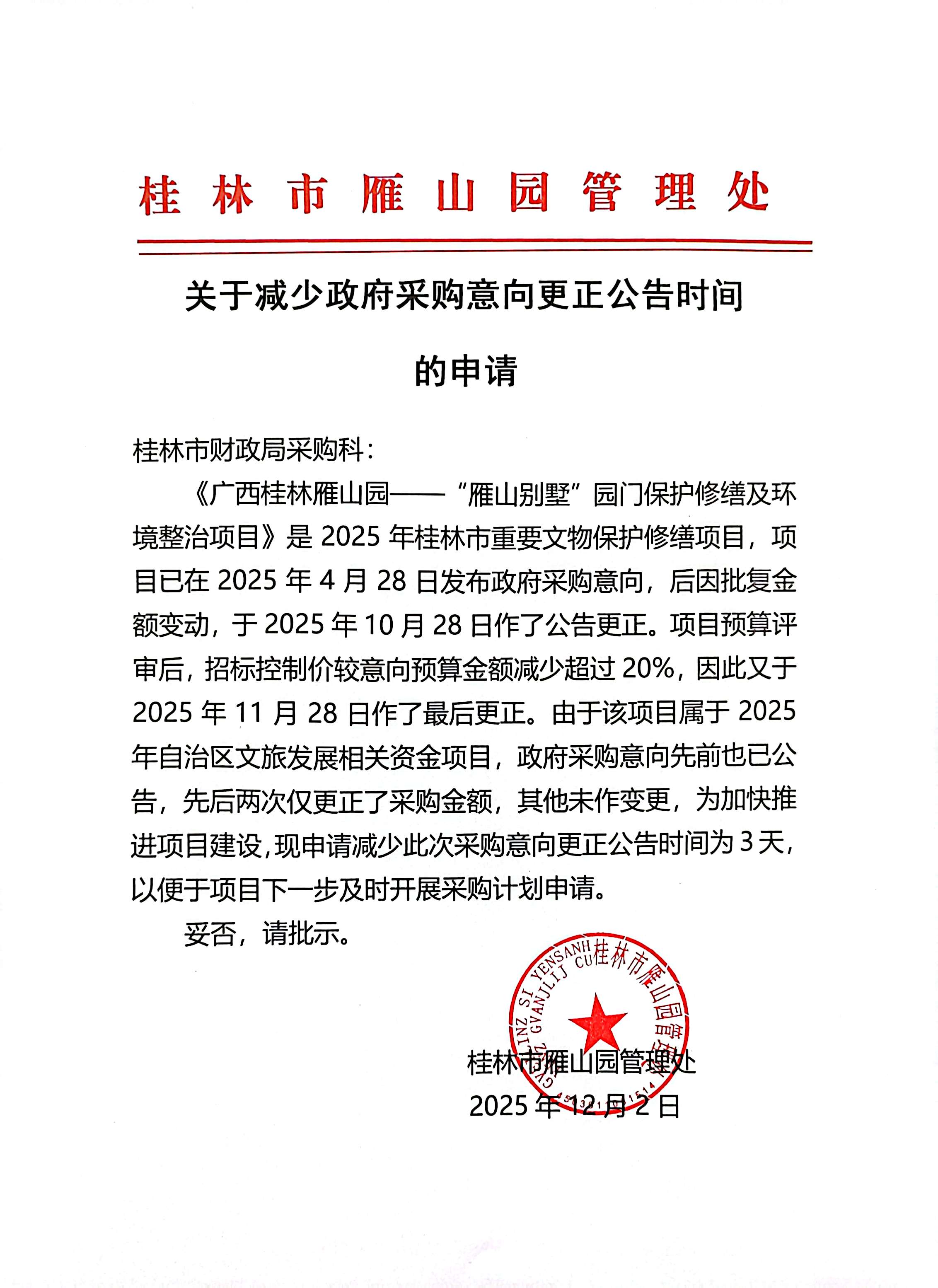 广西华诚达建设项目管理有限公司关于广西桂林雁山园--“雁山别墅”园门保护修缮及环境整治项目(项目编号:GLZC2025-C2-990662-GXHC)竞争性磋商公告