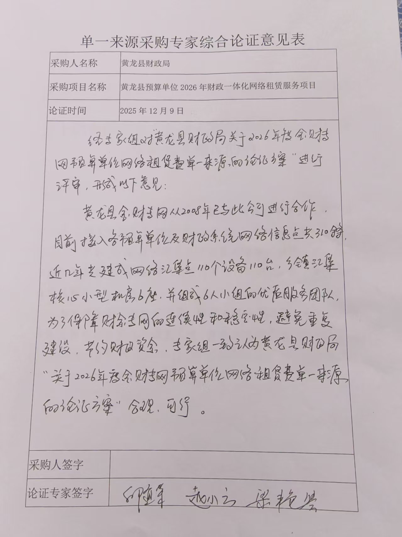 黄龙县财政局黄龙县预算单位2026年财政一体化网络租赁服务项目采购实行单一来源采购方式的公示