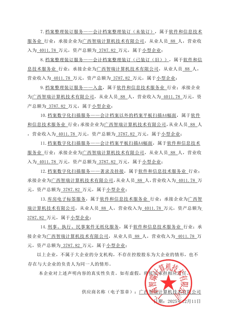 | ** | 南宁市中级人民法院纸质档案整理及数字化服务 | 档案数字化扫描服务——著录及挂接 | 详见公告附件 | 详见公告附件 | 详见公告附件 | 详见公告附件 |