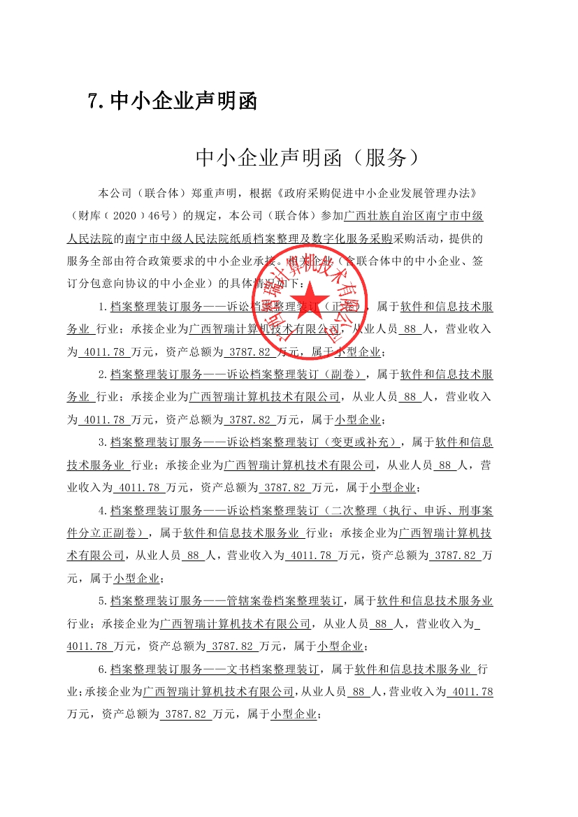 | * | 南宁市中级人民法院纸质档案整理及数字化服务 | 档案整理装订服务——文书档案整理装订 | 详见公告附件 | 详见公告附件 | 详见公告附件 | 详见公告附件 |