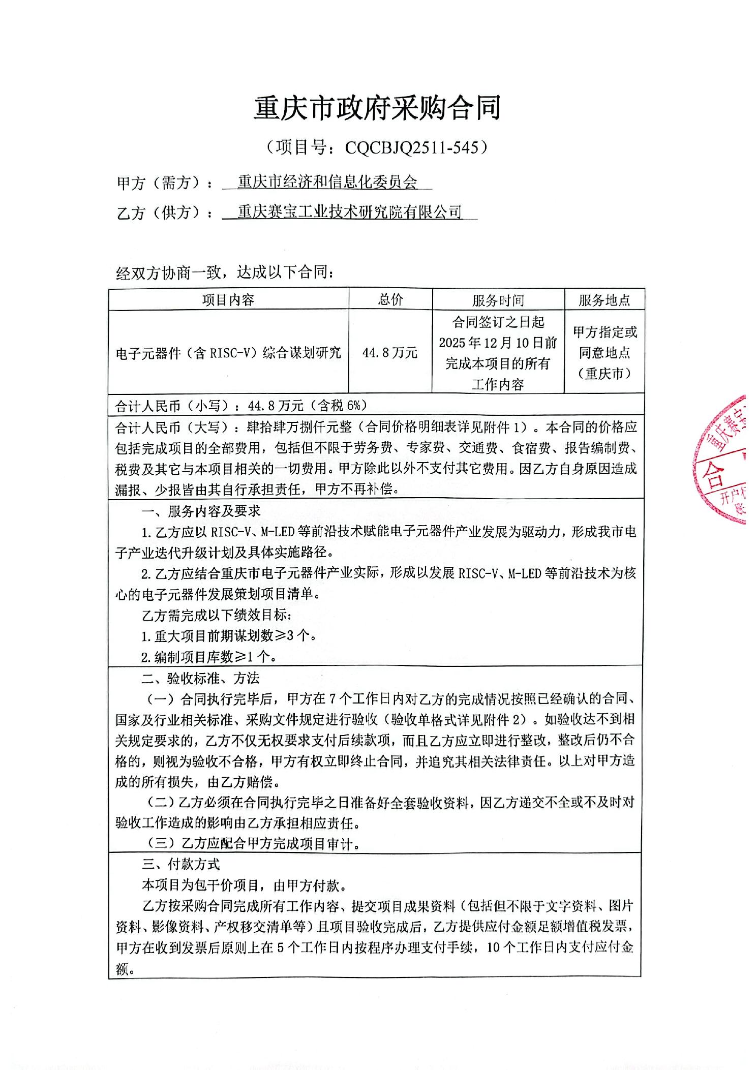 电子元器件(含RISC-V)综合谋划研究采购合同