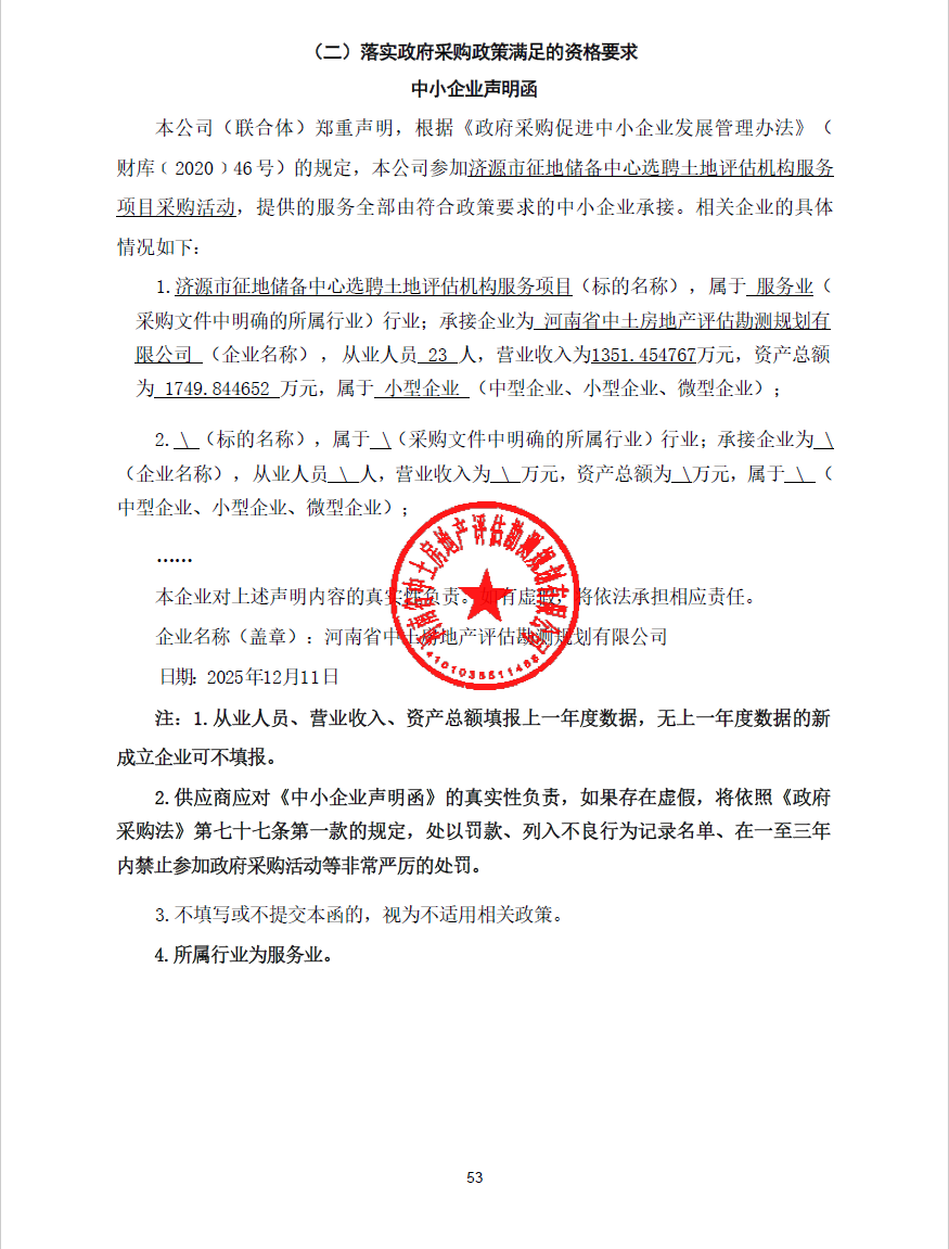 济源市征地储备中心选聘土地评估机构服务项目-入围结果公告