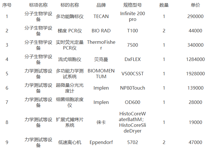 山西医科大学第二医院骨与软组织损伤修复国家级培育重点实验室提质升级建设项目流式细胞仪等设备采购结果公告